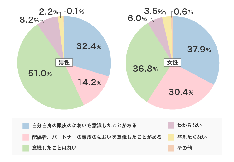 男女とも3人に1人が「自分の頭皮のニオイを意識」。配偶者、パートナーのニオイには女性の方が敏感