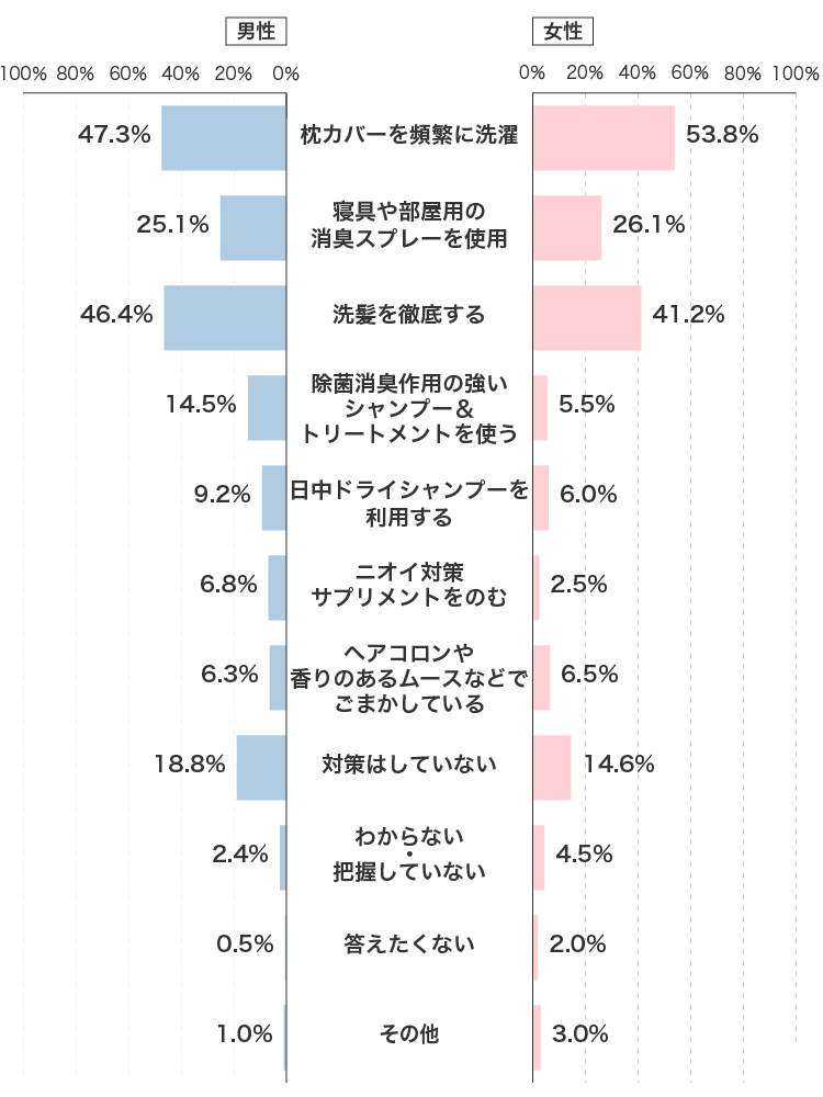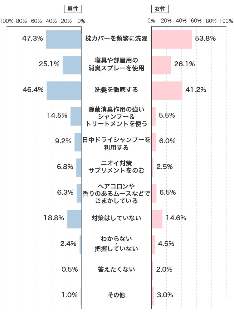 洗濯、洗髪、消臭スプレーなど普段の生活の延長的対策がほとんど
