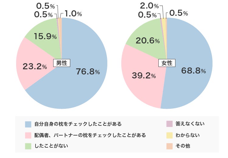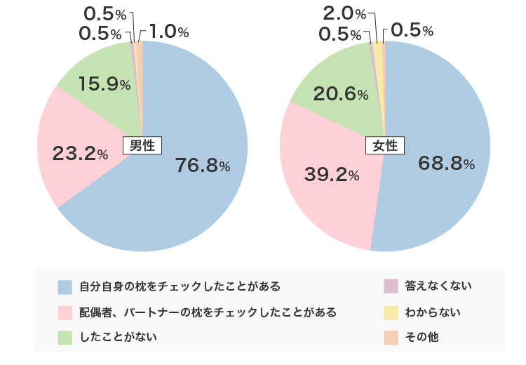 男性の4人に3人が枕チェック経験者。男性の方がチェック率が高い