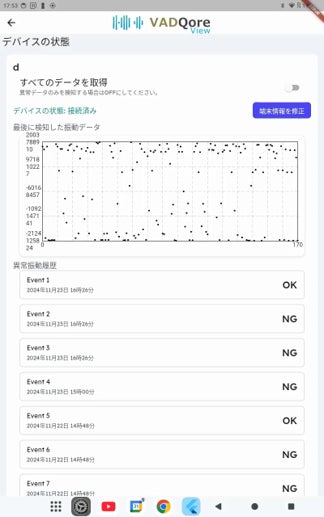 リアルタイムの振動データ可視化や、異常アラートのモニタリングを直感的に行えます。