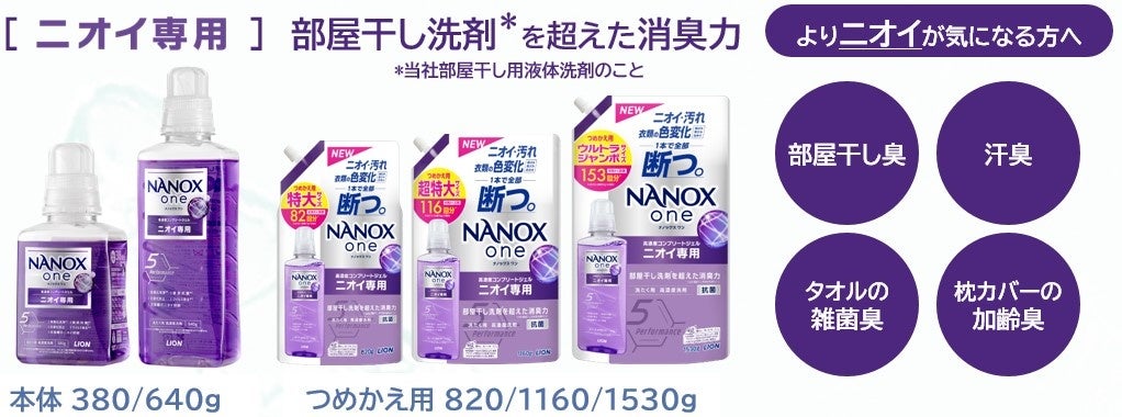 イヤなニオイの発生を抑える「新消臭成分」を採用し、従来のNANOXを超えた消臭力を実現