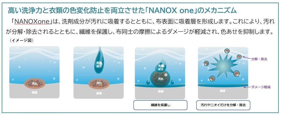 洗浄力・消臭力を追求しながら色変化を防ぐ『NANOX one』で、“衣類のロングライフ化”にも貢献します。