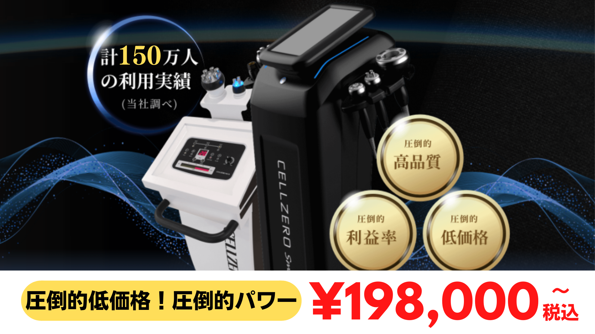 ー「ご安心ください!!」全マシン、本場美容大国である韓国で製造!!(※中国製ではございません。)業界最高峰の業務用マシンを”業界激震の圧倒的低価格”でご購入いただけます。CELLZERO BRANDのマシンを使用し、ダイエット成功者が殺到! 圧倒的パワーだからこそ、圧倒的結果が期待できます。