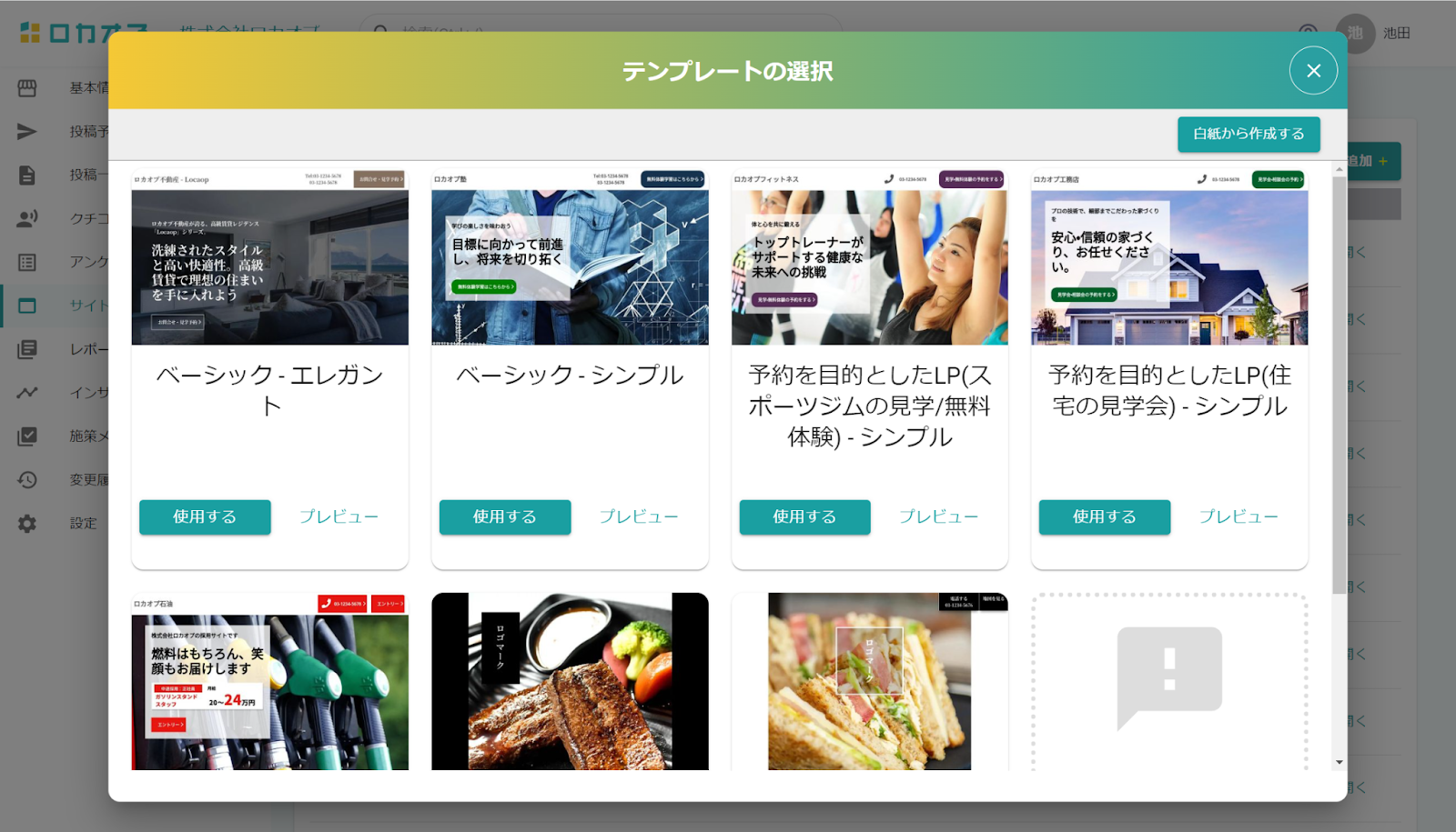 「ロカオプサイトのテンプレート機能」はロカオプユーザーであれば、どなたでも使用可能です。テンプレートの種類は、これからも随時追加予定となっております。更なるアップデートにご期待ください。