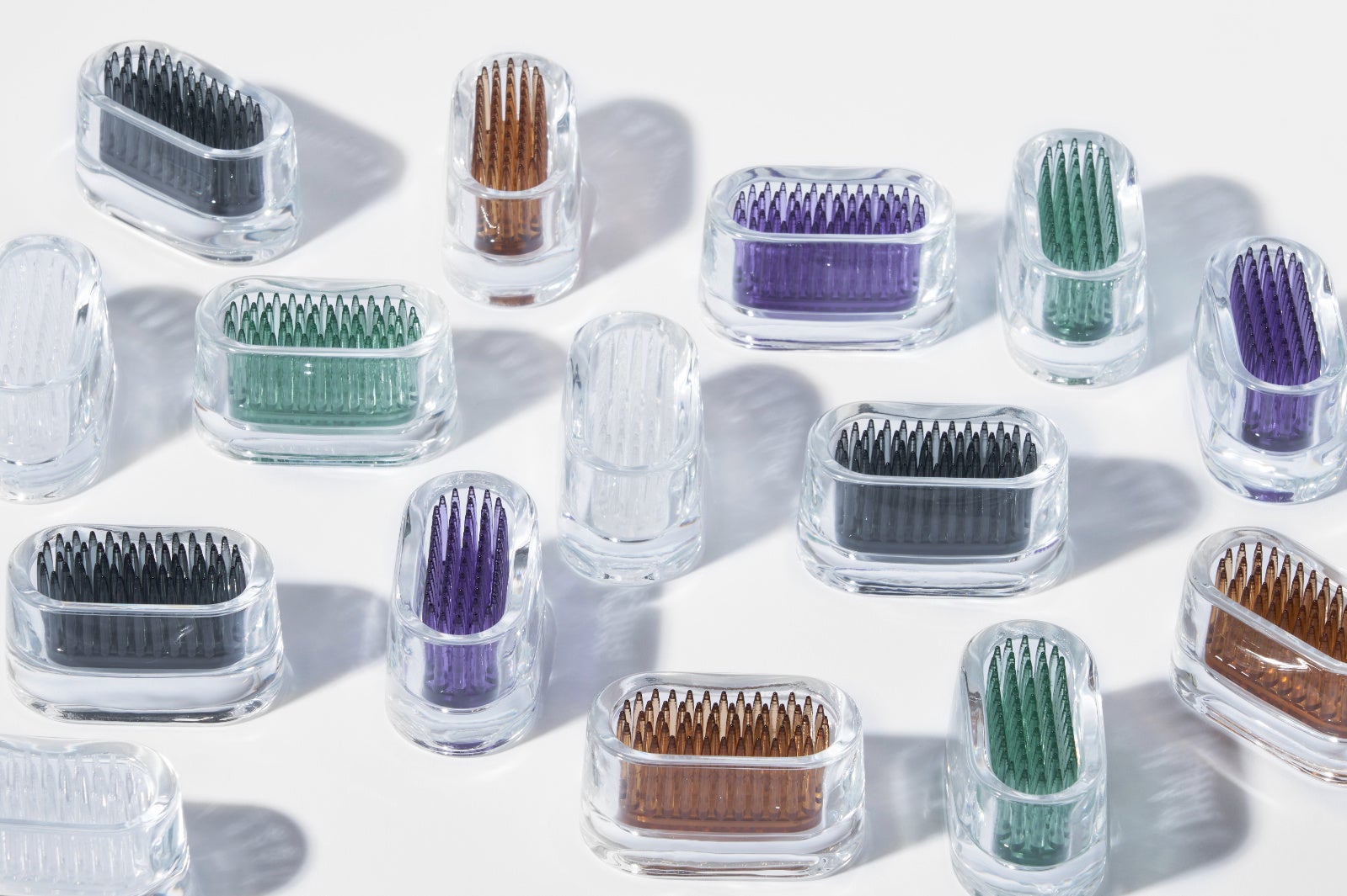 宝石の色をイメージした剣山 美しく透き通るバリウムガラス