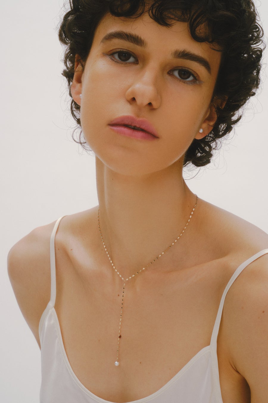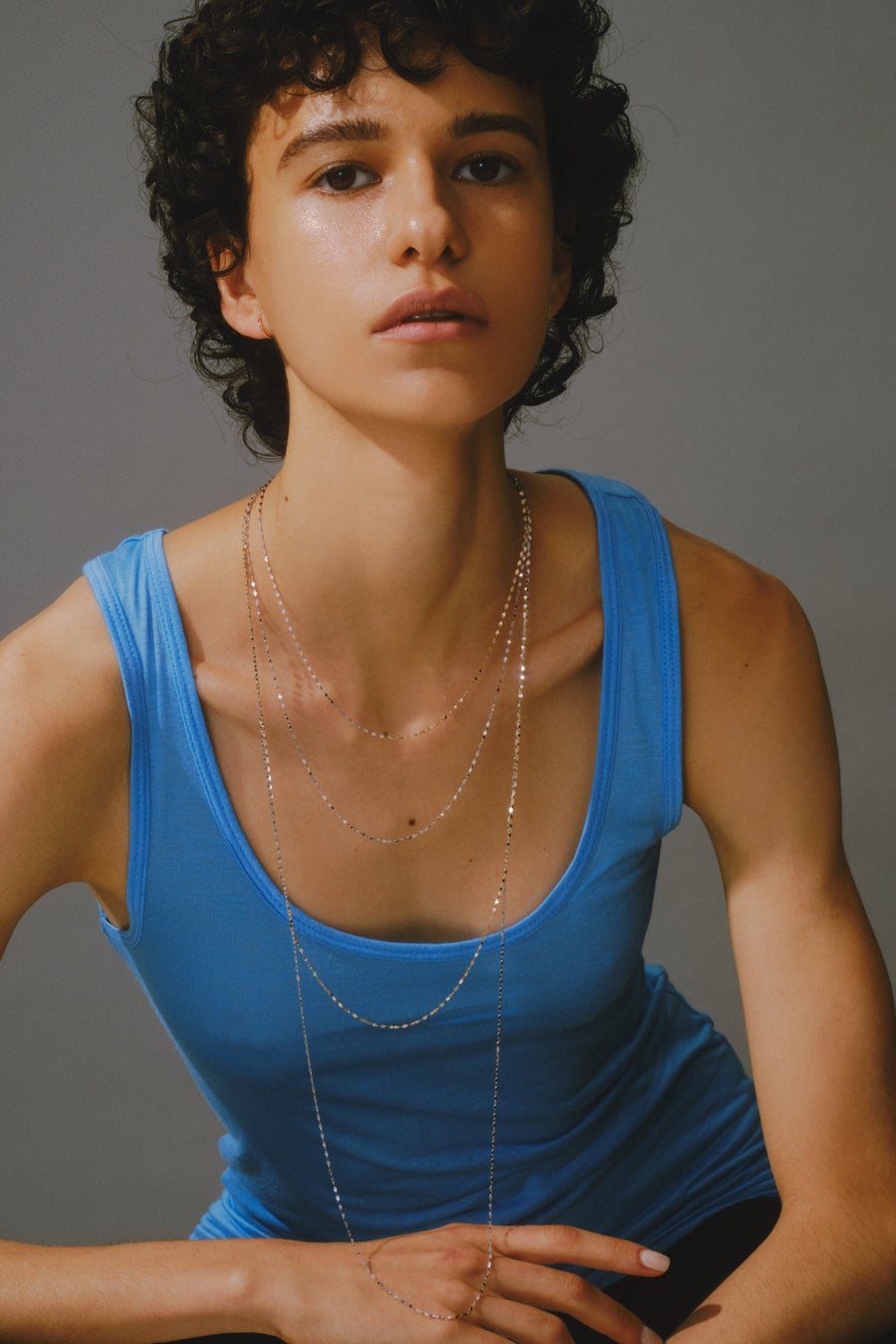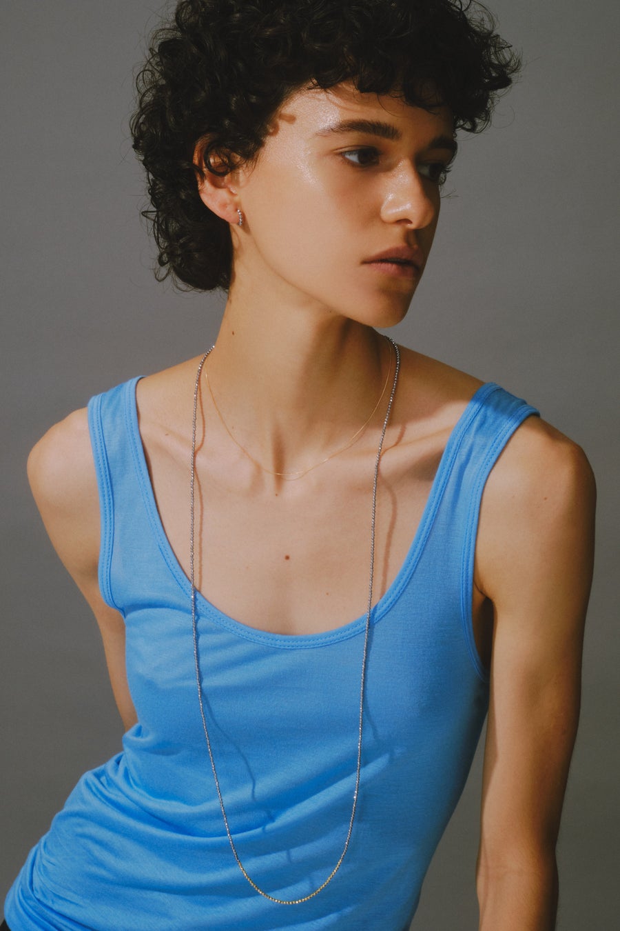 Sophieネックレスと合わせた、コントラストを際立たせたレイヤースタイルがおすすめです。