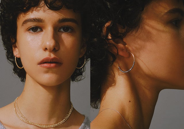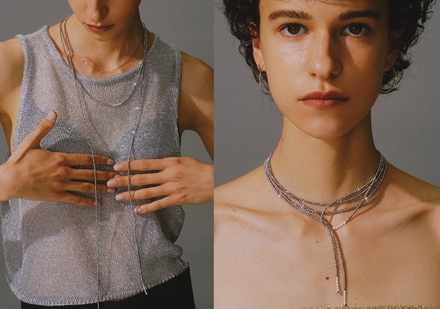 ひとつ取り入れることでコーディネイトに洗練感を持たせてくれるのはもちろん、お持ちのジュエリーとの重ね付けで、いつもと違う表情に。