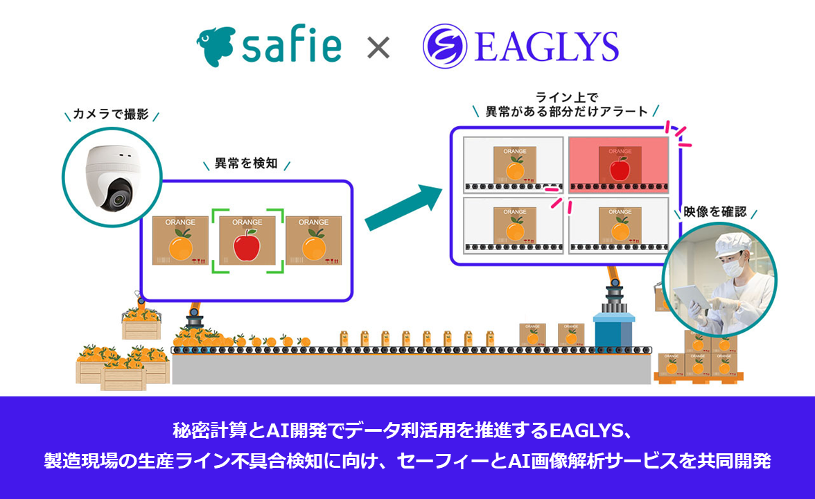 秘密計算とAI開発でデータ利活用を推進するEAGLYS、製造現場の生産ライン不具合検知に向け、セーフィーとAI画像解析サービスを共同開発