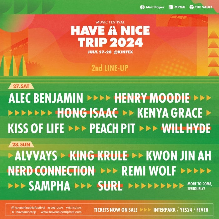 7/27(土)~28(日)一山(イルサン)で「HAVE A NICE TRIP 2024」実施。 KISS OF LIFE、KENYA GRACE、クォン·ジナ、ホン·イサクなど有名アーティスト出演