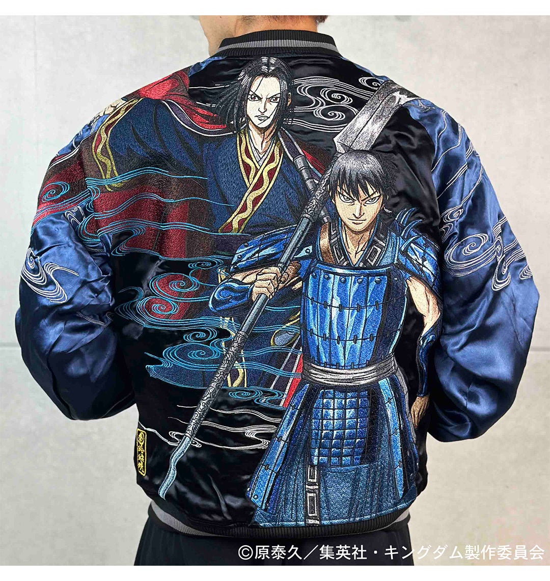 大きいサイズの専門店ミッド・インターナショナルが、これまで様々なアニメライセンスとコラボレーションしてきた《絡繰魂》と人気アニメ【キングダム】のコラボのスカジャン2XLサイズ、4タイプを販売開始!