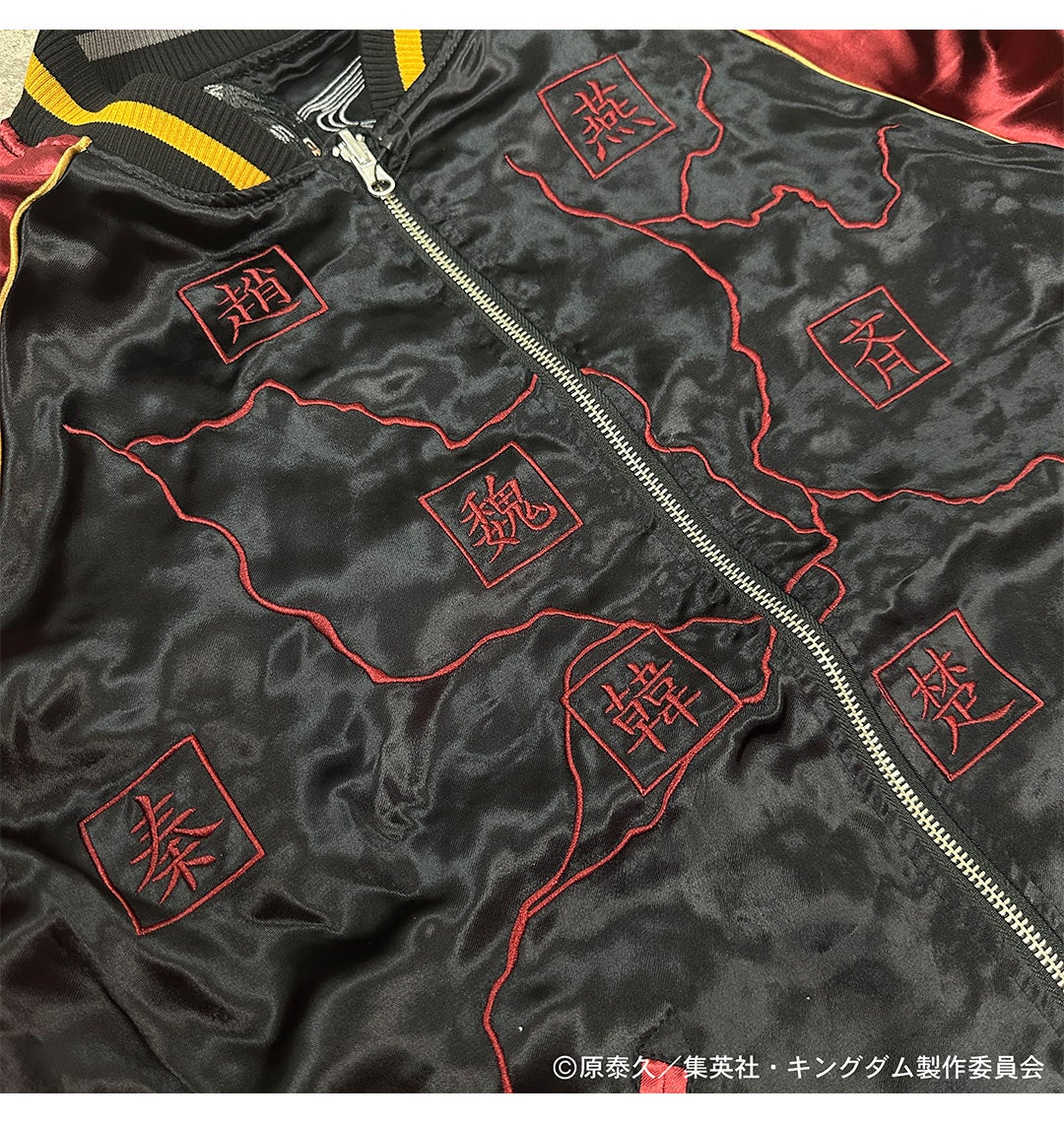 リバーシブル表と裏は2 人それぞれを象徴するカラーリングでデザイン。リバーシブル前面には春秋戦国時代の中華七大国が刺繍されています。