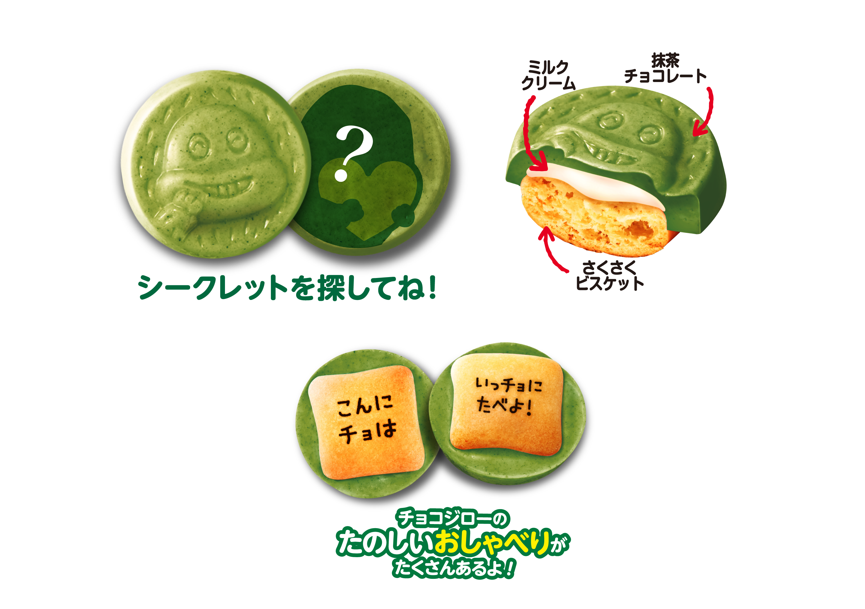 チョコデール山で偶然誕生した、まろやかな抹茶ミルク味のチョコビスケットが登場!