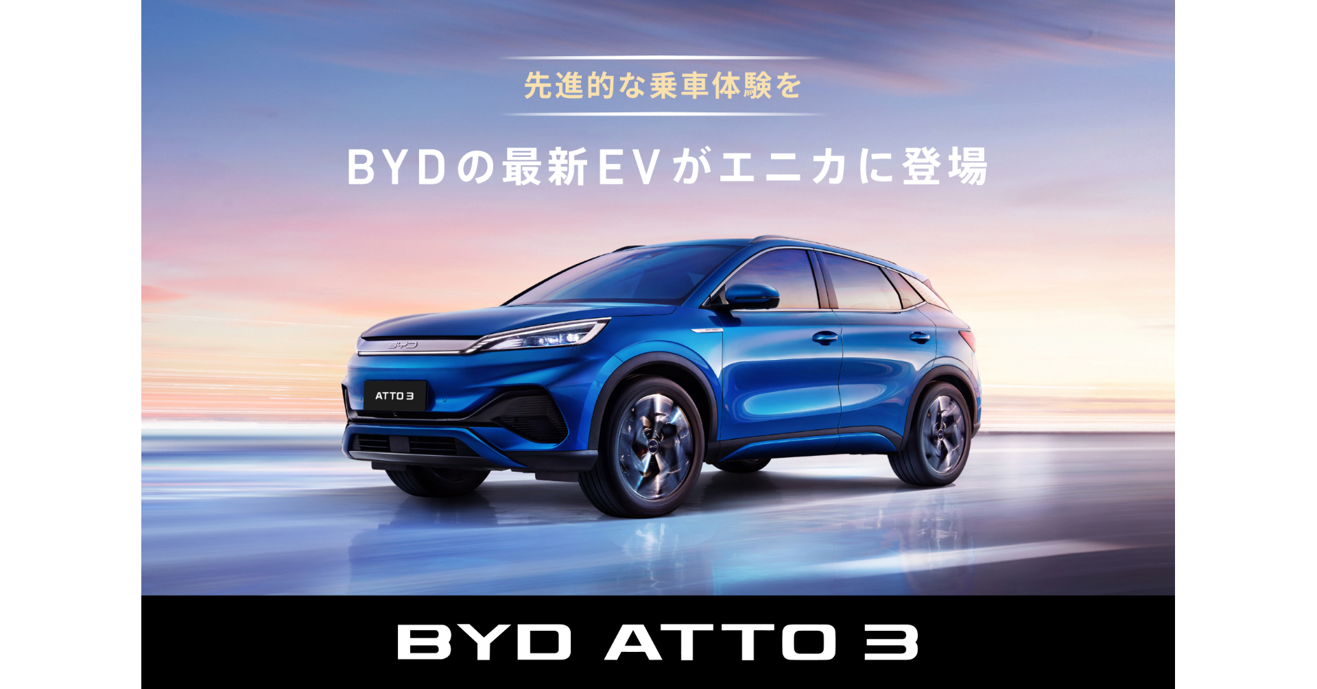 電気自動車販売台数世界No.1(※1)のBYD、カーシェア「エニカ」に参画 e-SUV「BYD ATTO 3」の乗車体験を5/19(金)より受付開始