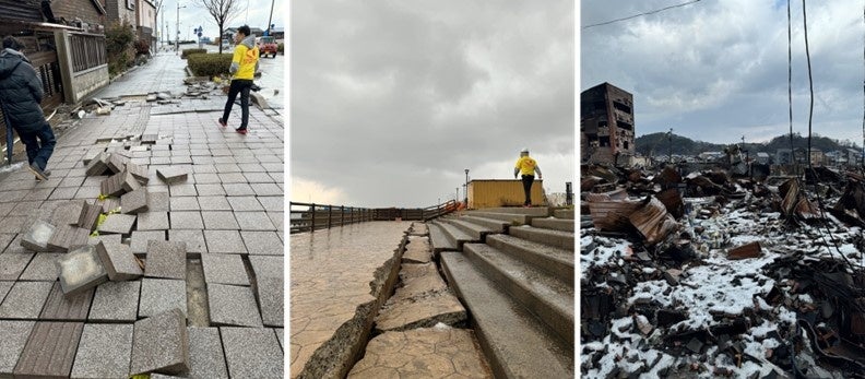 地震による火災で焼失した「輪島朝市」を訪ね、被害状況を目の当たりにしました。断水による影響で迅速な消火活動ができなかったことで被害が拡大したその場所は惨憺たる風景であり、ほとんどの場所がいまだ手付かずのままで復興への道のりは一時的なボランティア活動ではなく長い時間をかけて行われるものであると現地へ同行した当社スタッフは感じていました。