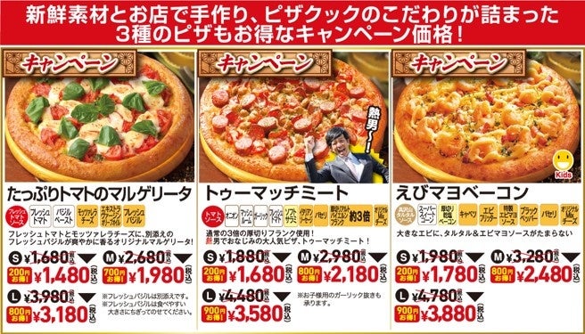 さらに、人気ピザ3種もキャンペーン価格!