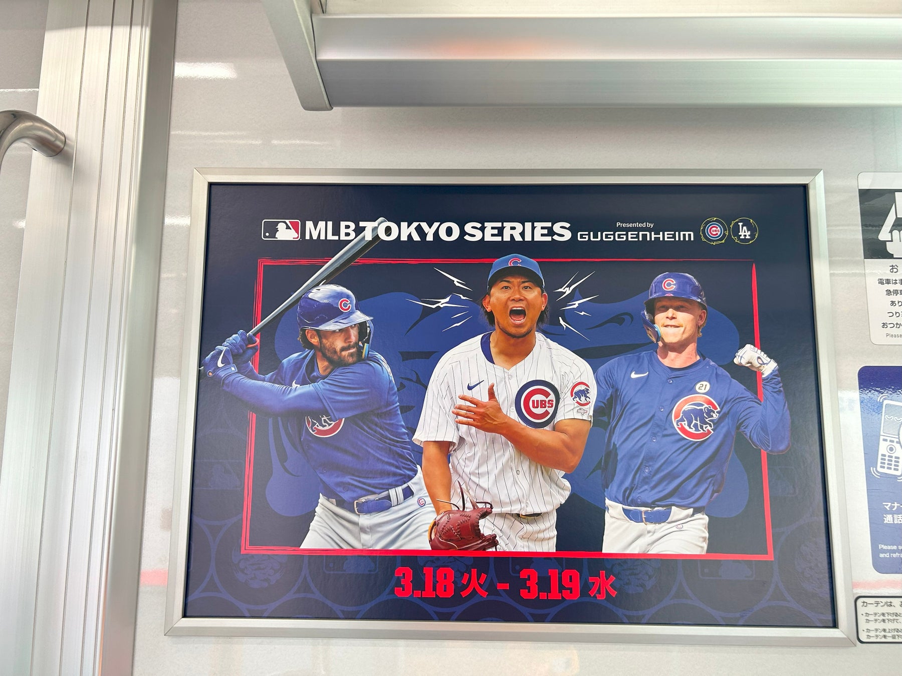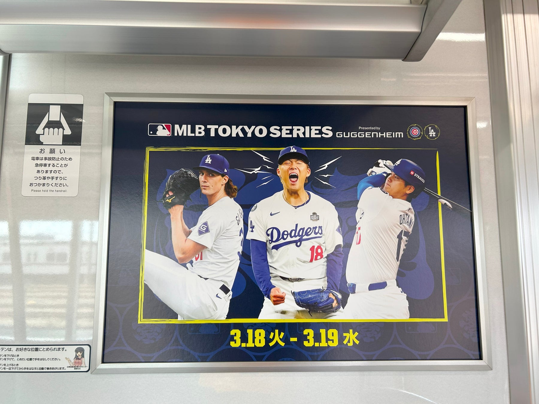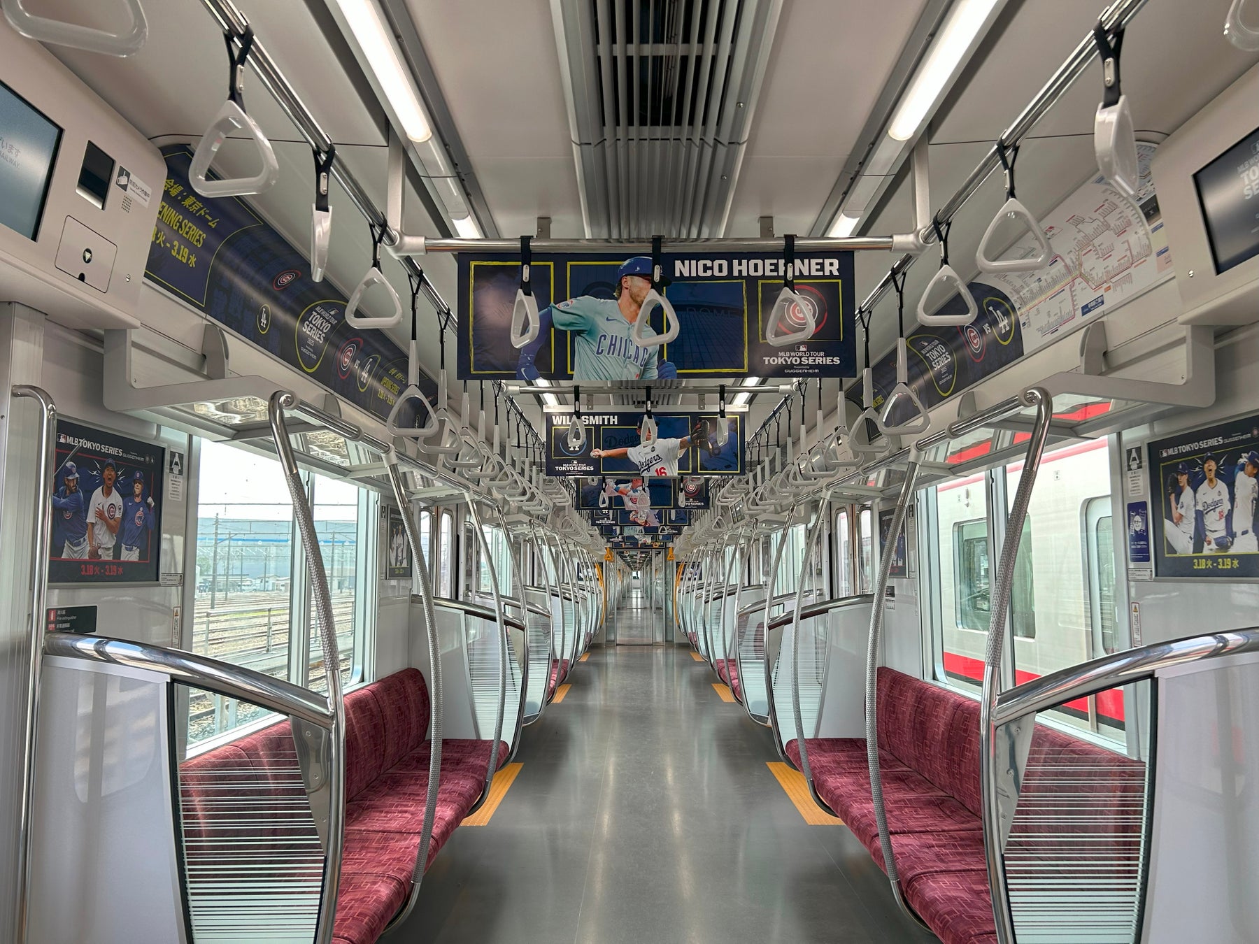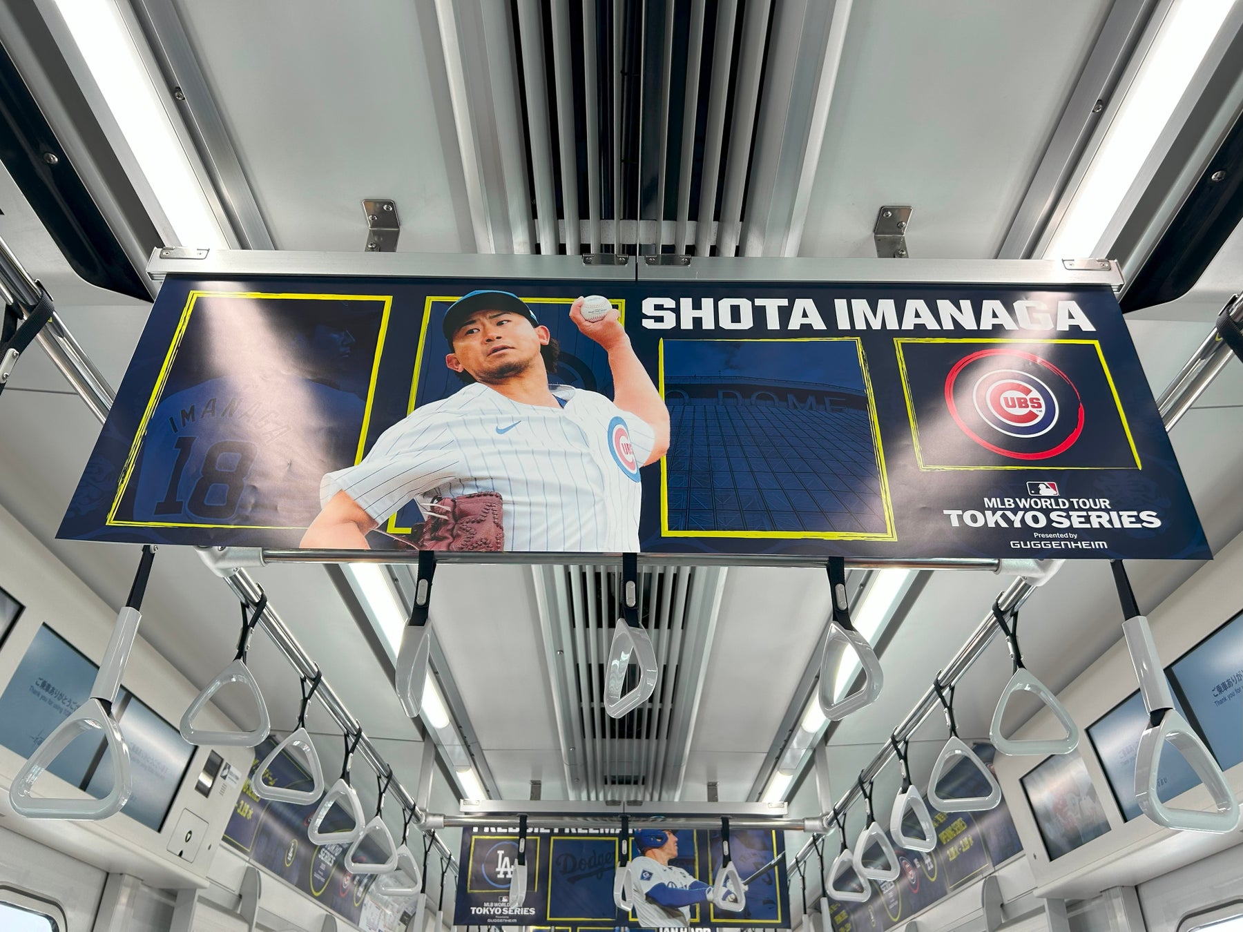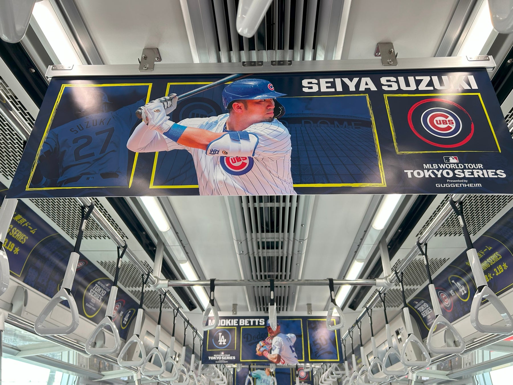 「MLB東京シリーズ by グッゲンハイム」開催に向けてトレインジャックを実施。出場が期待されるスター選手のビジュアルで、電車内がMLB一色に!