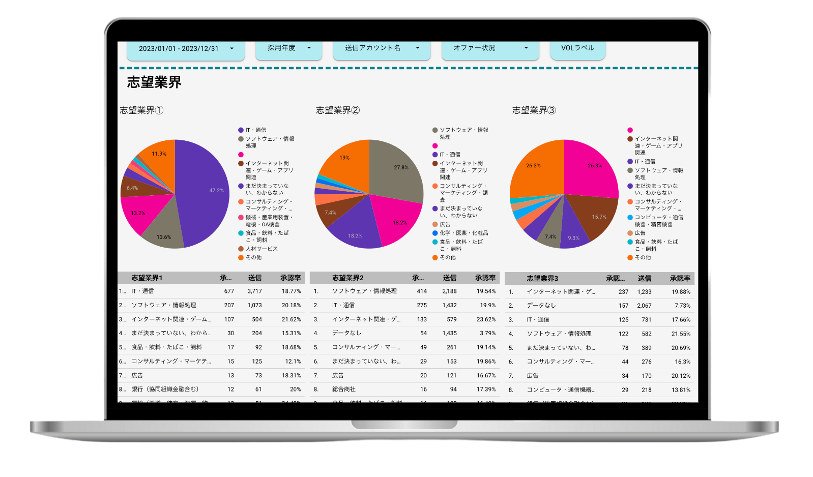 欲しい人材に適したスカウト媒体選びから、新卒採用の最新トレンド及び他社の成功実例を元に効果的なスカウト戦略の提案、定期的にオファー送信の進捗や効果改善提案を行い、独自の分析ツールを利用した定期的な振り返りミーティングを実施します。