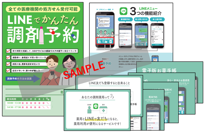 患者向け資材:登録促進チラシ、店頭ポスター、調剤予約ガイド