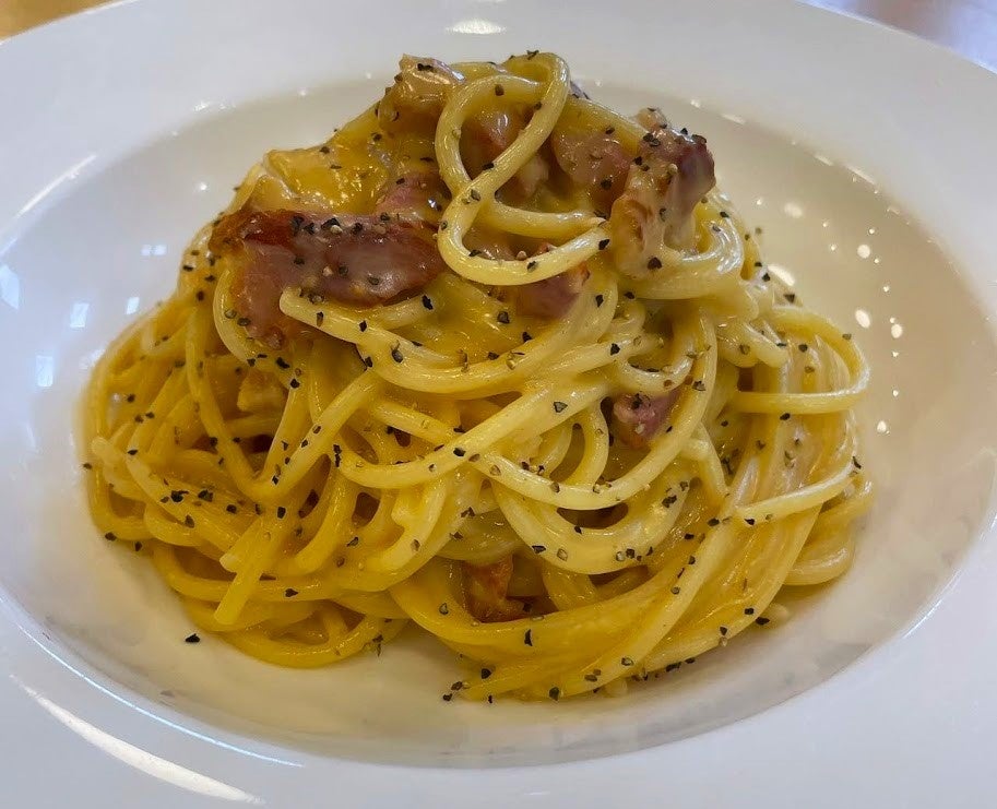 ▼自家製ミートソース・ベーコンと地卵のカルボナーラ 1,650円(税込)