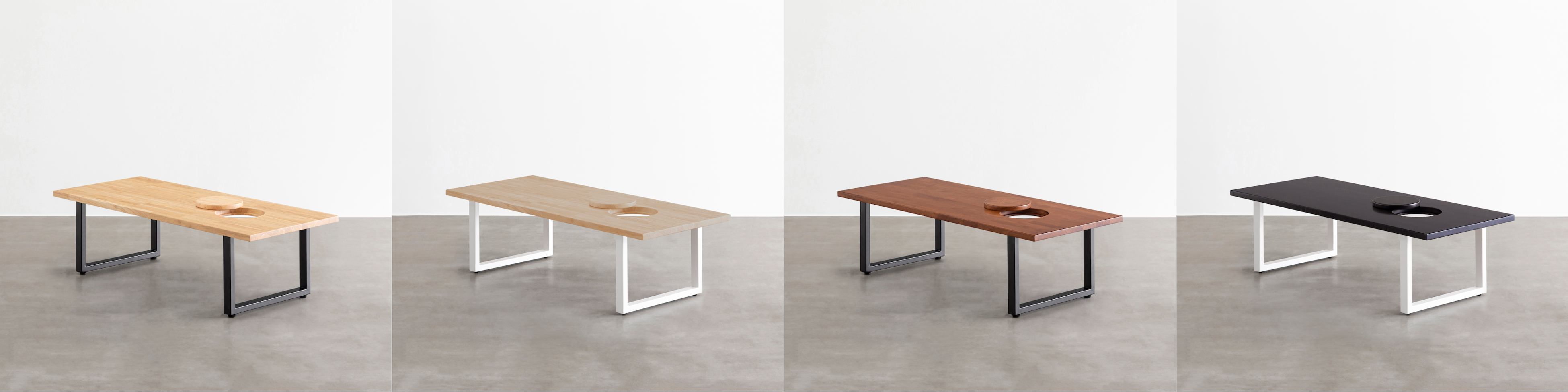 天板のサイズオーダーが可能なローテーブルに、人と猫が一緒に使える ネコ穴付きタイプを追加。