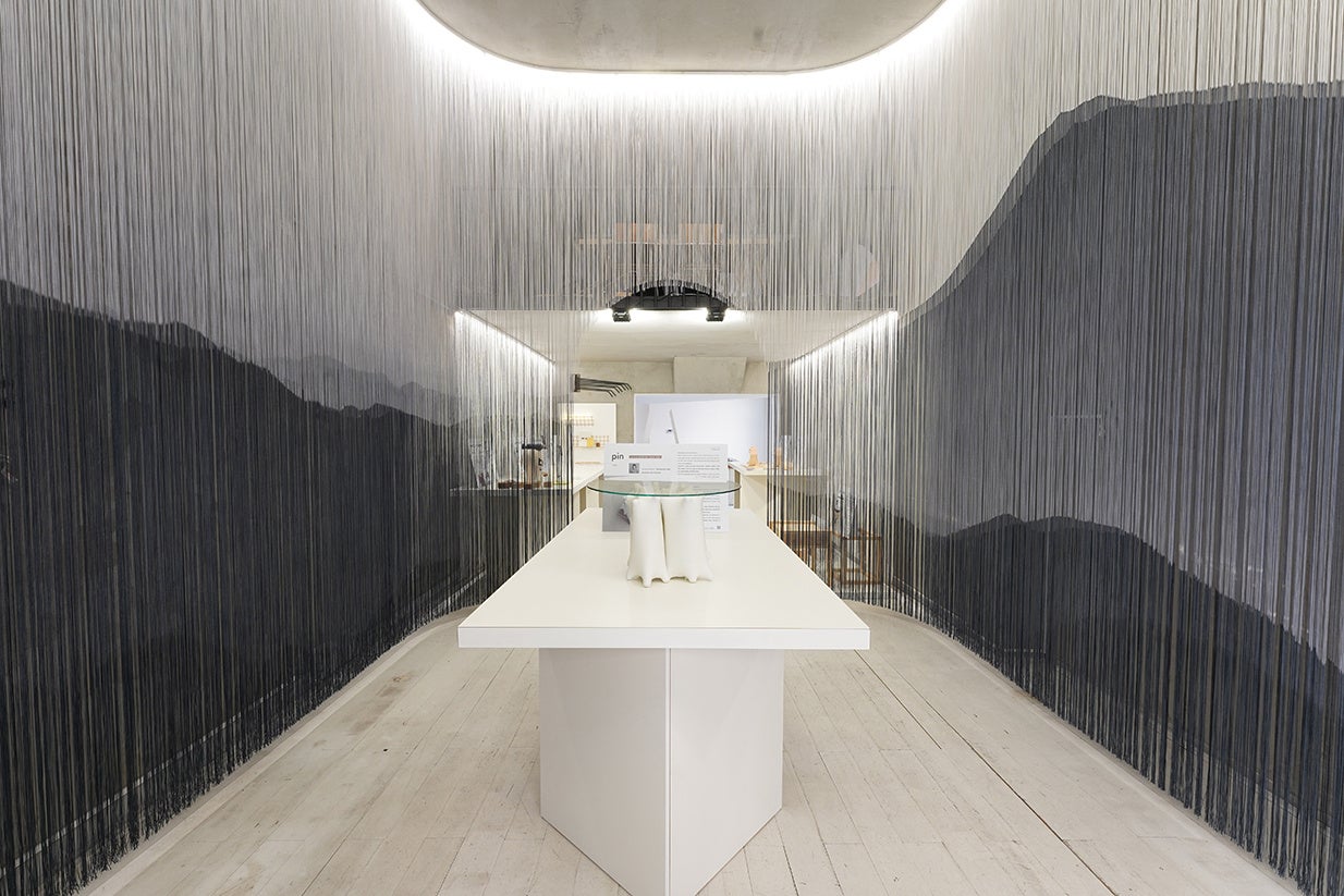 bud brandが出展する会場では、今年もanonimo designに協力していただき、「吊るす」テーマを感じ取れるような、藤の花をイメージしたストリングスカーテンで展示会場を華やかに彩ります。