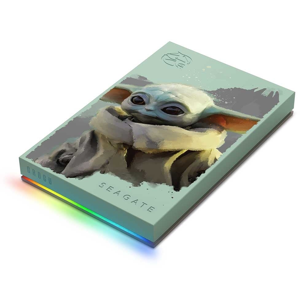 スター・ウォーズBeskar™ Ingot Drivesのラインナップに加わったスペシャル・エディションFireCuda外付ハードディスク・ドライブには、スター・ウォーズの有名なキャラクターであるグローグーを表した独自のデザインが用意されています。このドライブはカスタマイズ可能なRGB LED照明1を備えており、グローグーのデザインに合わせ、ぼんやりと光るブルーの照明となっています。内蔵のカスタマイズ可能な照明オプションを備えたこのドライブは、ゲーマーやスター・ウォーズ愛好家向けに自宅で、はるか彼方の銀河系の雰囲気を楽しめるようになります。
