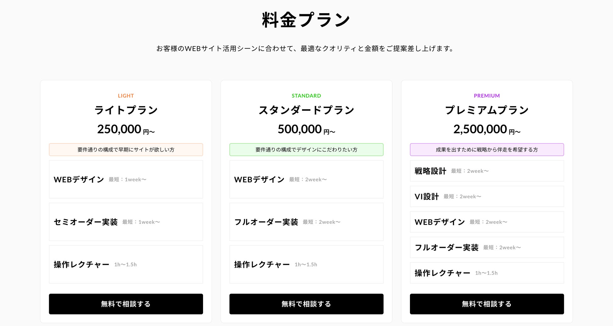 クライアントのフェーズに合わせたご提案ができるプランになっておりますので、Webサイト制作にお迷いの方はぜひお問い合わせください。