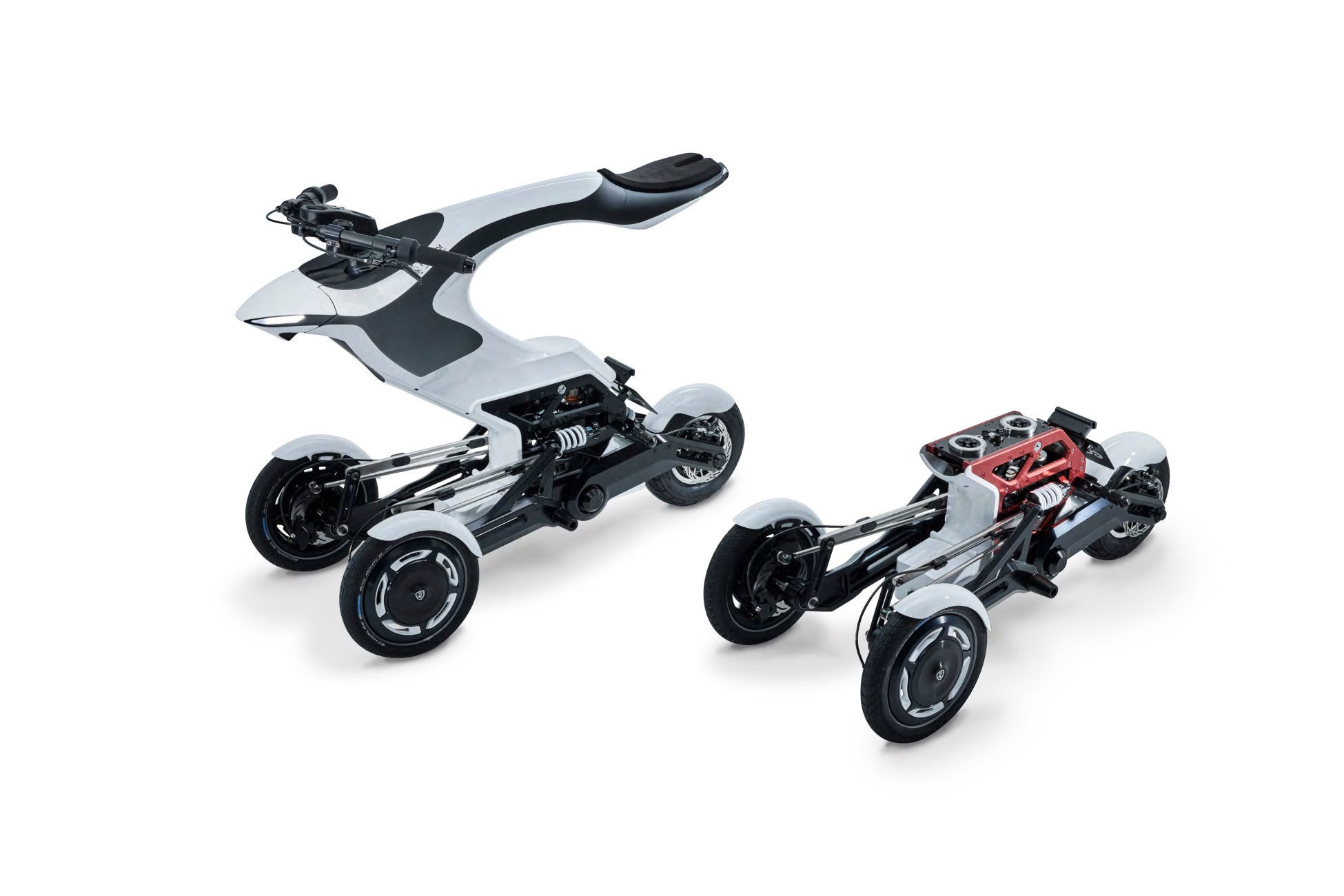 高速スラロームターンも簡単に楽しむことができるため、モータースポーツの興奮と快適な走りを全世代に提供します。また、前輪独立懸架リーンサスペンション、可変式差動リーンダンパー、ワンアクション連結ユニット、油圧ブレーキコンバータといった高度な技術も搭載しています。これにより、使う人すべてが乗り物のカッコ良さと楽しさを実感できるように設計しています。