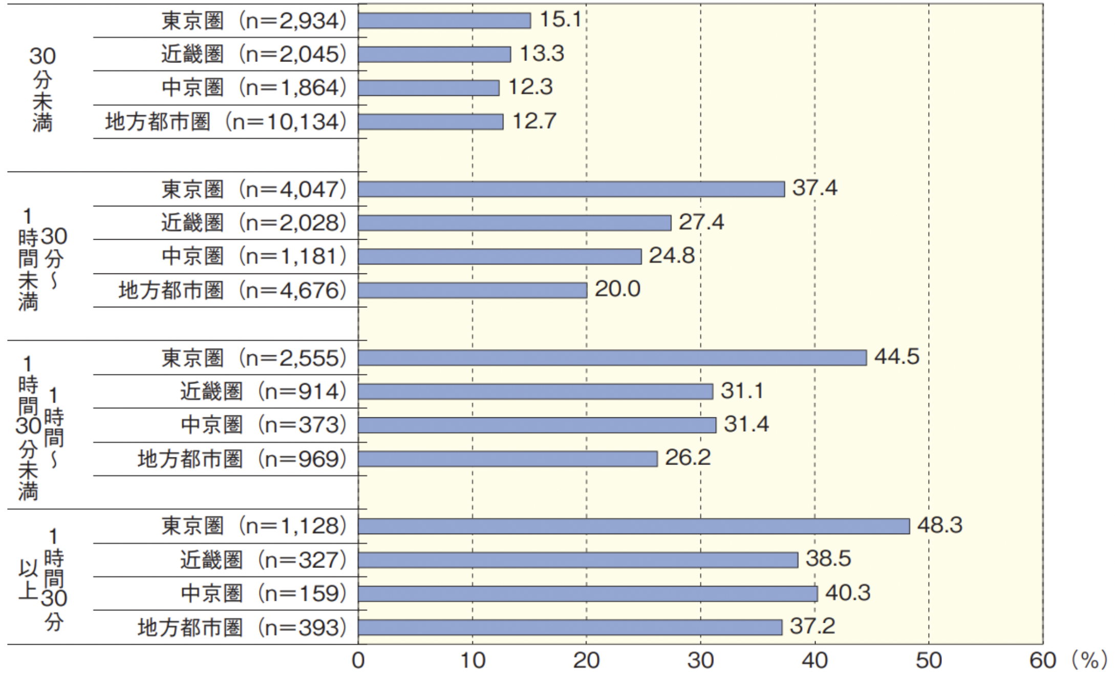 特に通勤に30分〜1時間以上を要す地域においての需要の高まりは著しく、東京圏に通勤する人のうち、通勤時間が30分未満のエリアに比べ、30分以上を要するエリアの方がテレワークが2倍以上浸透していることが明らかとなりました。センター南駅についても東京、横浜への出勤者を多く抱えるベッドタウンであり、テレワークに対するニーズが非常に高いものと推察されます。