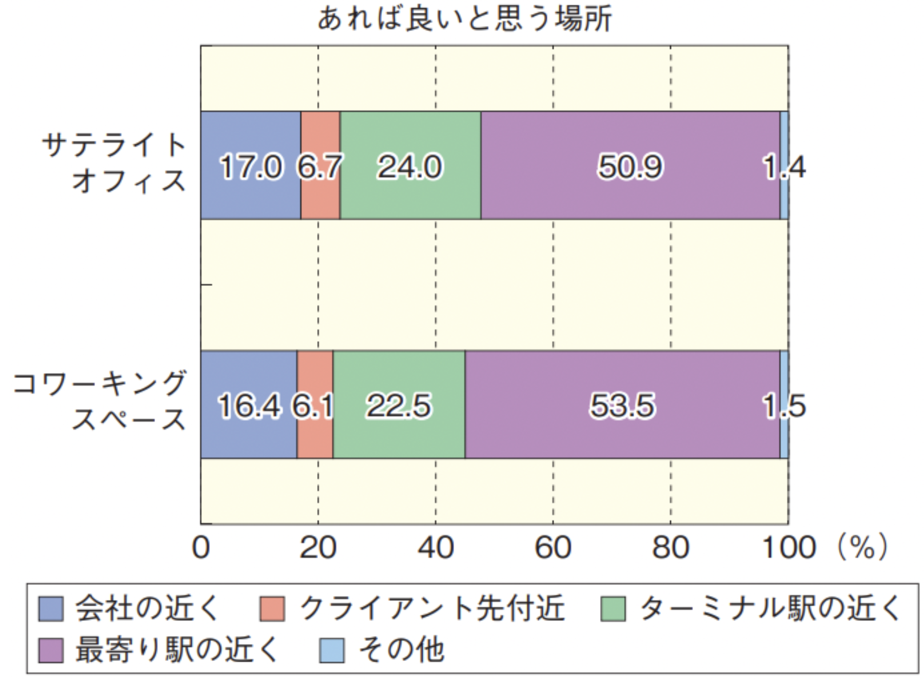 また、テレワークを実施する場所に求める条件としては、最寄駅付近のアクセスのいい場所にあり、近くに買い物・飲食ができる施設があることが条件であることがうかがえます。