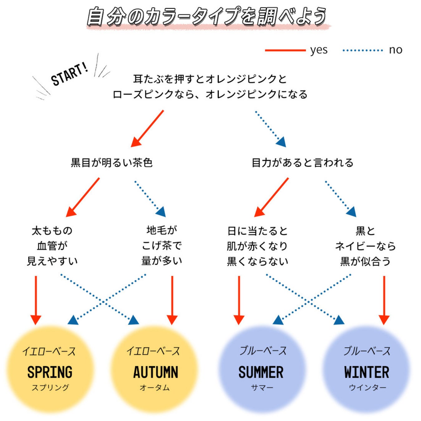 自分のカラータイプが分からないという方は上の画像の質問に答えて診断することができますよ。