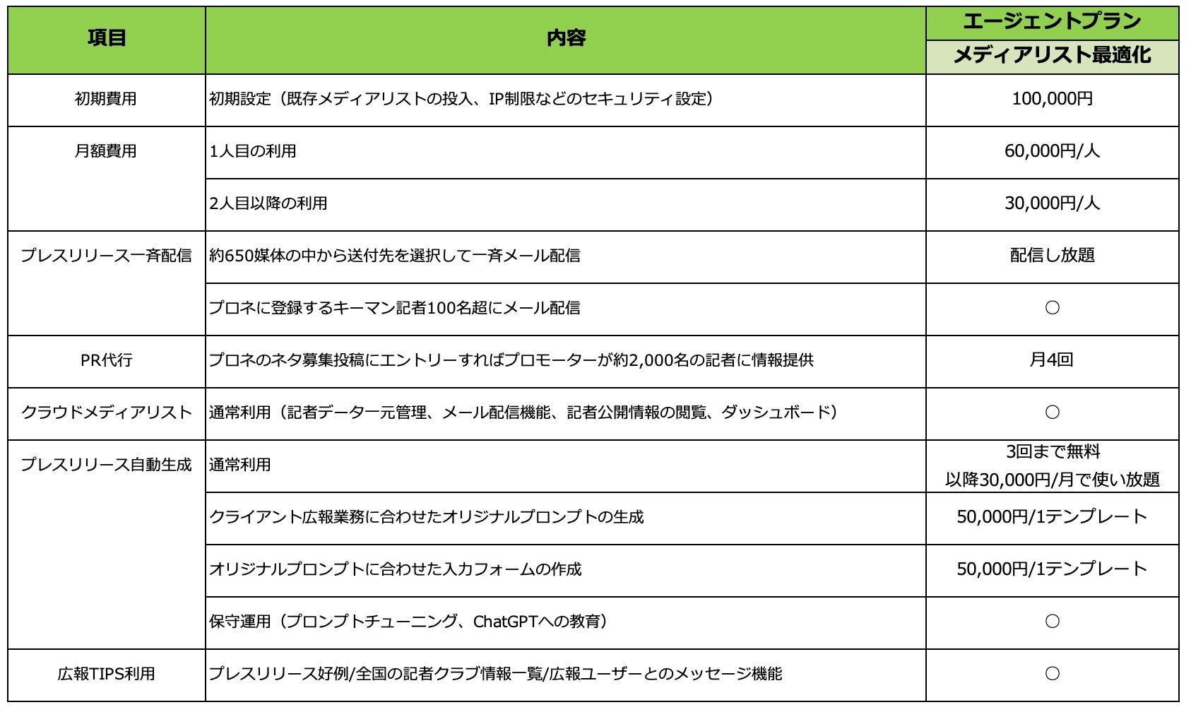 -エージェントプラン:初期費用10万円、月額6万円(1人目)、月額3万円(2人目)