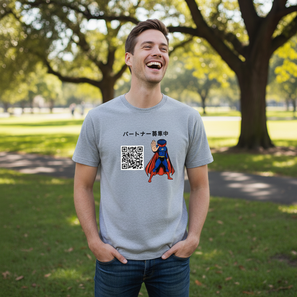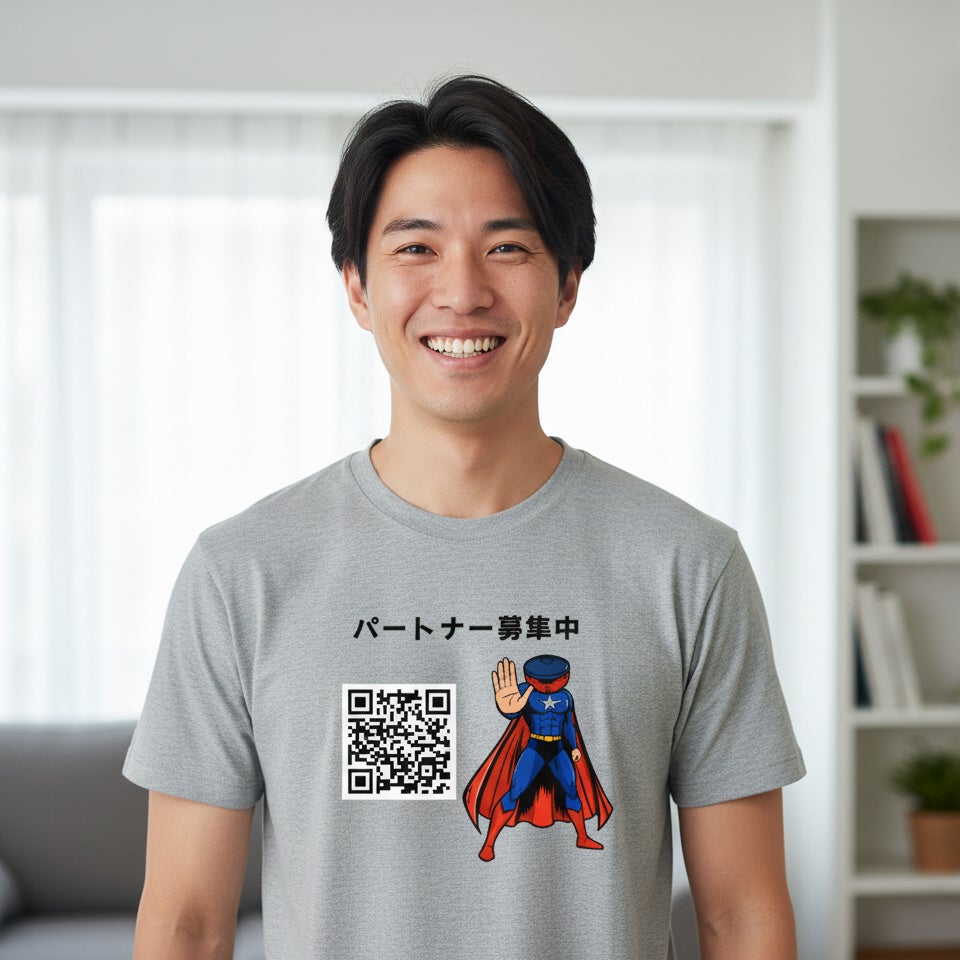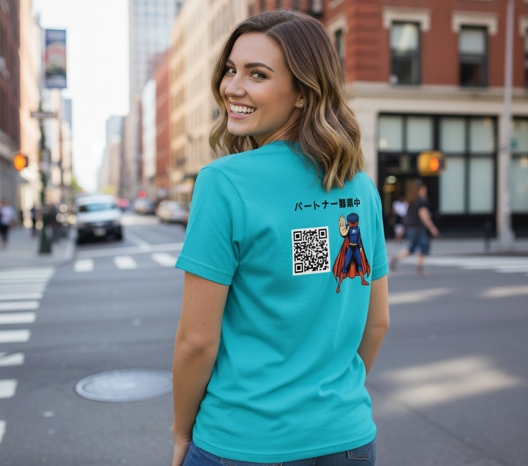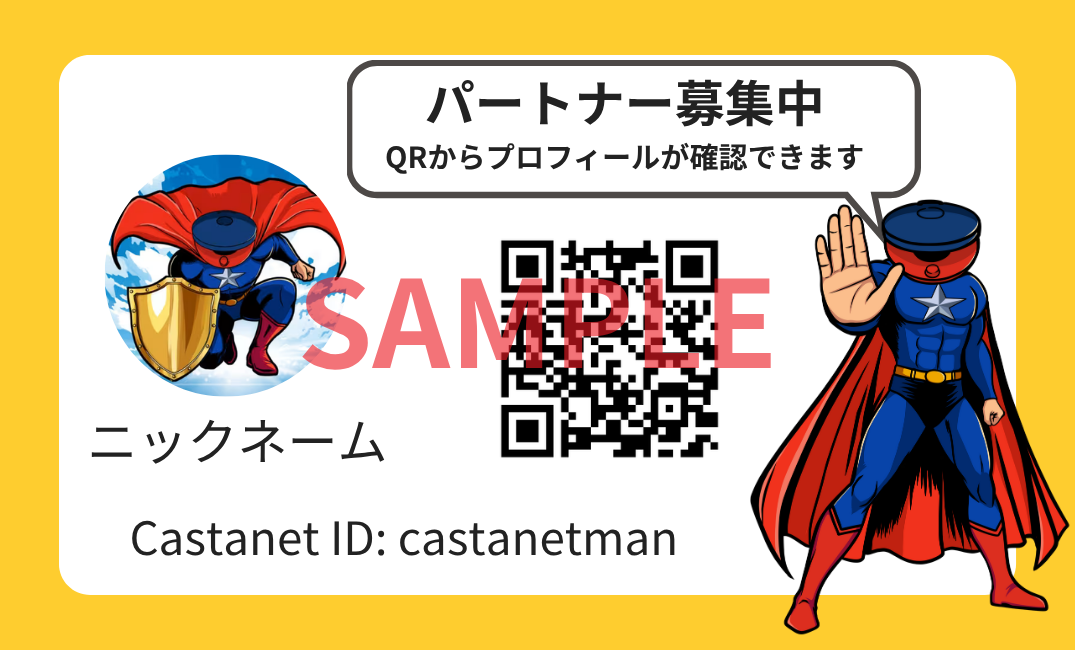 「カスタネット パートナー募集Tシャツ」の仕組みは「カスタネット婚活名刺」と同一です。「カスタネット婚活名刺」は友人に渡すなどの方法でお相手探しをする飛び道具的な使い方を、「カスタネット パートナー募集Tシャツ」はコミュニケーション的な使い方を提唱しています。