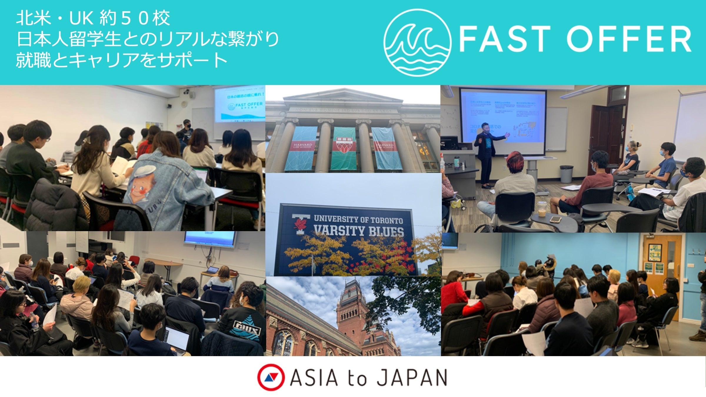 ASIA to JAPANは海外大学の日本人留学生採用に向け、北米・英国でオンキャンパスプロモーション「FAST OFFER JP」を実施します。