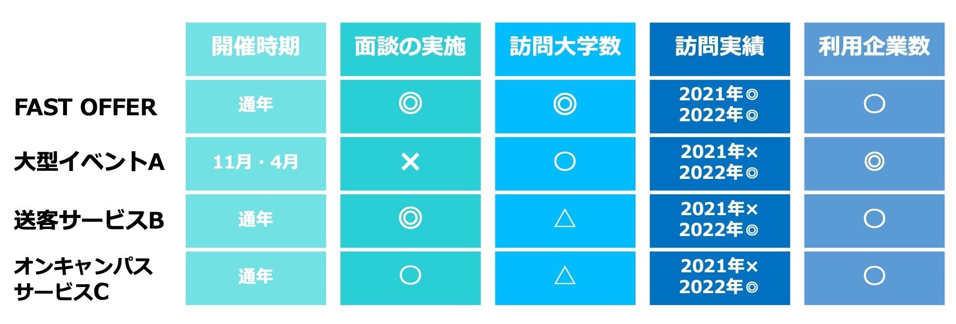 類似のサービスと比較して、FAST OFFER JPのオンキャンパスプロモーションは