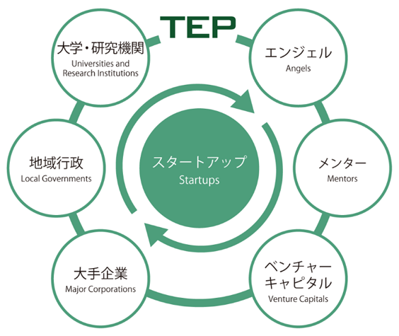 TXアントレプレナーパートナーズ(TEP)は、日本のトップレベルの技術をビジネス化し普及させることを目的とする技術系スタートアップの支援組織です。コア技術を持ち、そのビジネス化を目指すディープテック・スタートアップを中心に、起業・経営経験が豊富なエンジェル投資家、専門的アドバイスが可能なメンター、スタートアップ起業との連携を望む大手企業らを会員として組成しています。現在は、大学や研究機関、地域行政、そして海外の同様のスタートアップコミュニティにもネットワークを広げており、世界でも有数の技術系スタートアップのエコシステムとなっています。