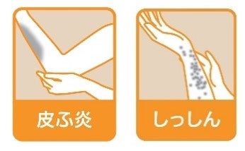 添付文書を、複数色やイラスト、アイコンを用いて記載。「使用上の注意」「効能・効果」「塗る量の目安」「塗り方」「副作用情報」などを製品ごとに読みやすく、分かりやすくし、安全に使用できる仕様となっています。