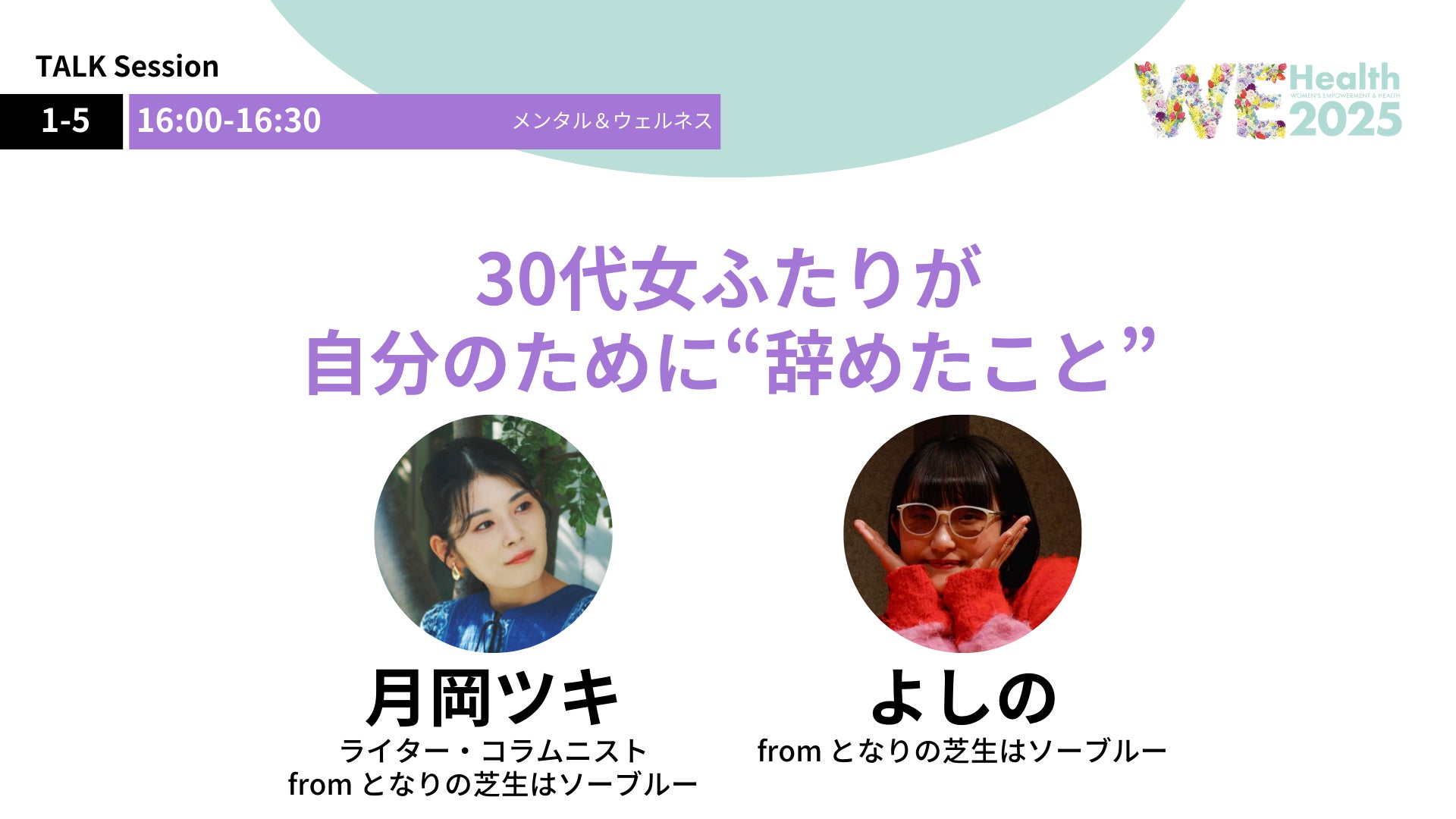 WEHealth2025では、ミレニアル世代女性が気になるさまざまなテーマのセッションが目白押し。多様なロールモデルのリアルな体験談に、新たな気づきが得れるかも。