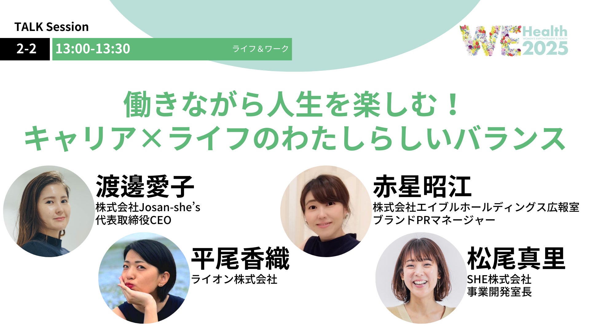 キャリアとプライベートのバランスに悩む人は多いですが、「すべてを完璧にこなさなくていい」という選択肢もあるはず。このトークセッションでは、多様なライフスタイルを実践しているパネリストが、自分らしいキャリアと人生を両立するヒントを共有します。仕事もプライベートも楽しみながら、自分の価値観に合ったペースを作るにはどうすればいいのか?共感と気づきが詰まったリアルなエピソードを通して、あなたにとっての「わたしらしいバランス」を見つけるヒントをお届けします!