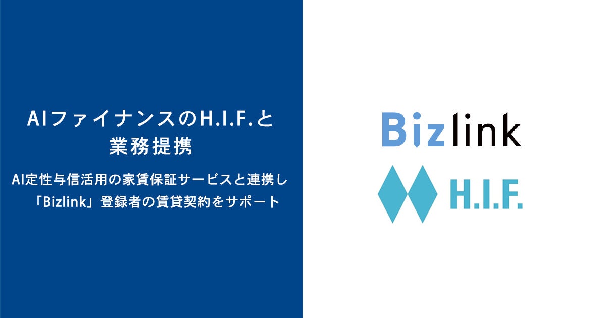 ITプロ人材のマッチングプラットフォーム「Bizlink(ビズリンク)」を運営する株式会社ビズリンク(本社:東京都品川区、代表取締役社⻑:姜 大成、以下「ビズリンク」)はAI与信審査技術の開発と提供及び同技術を用いたFintechサービスの提供を行うH.I.F.株式会社(本社:東京都新宿区、代表取締役CEO:東小薗 光輝、以下「H.I.F.」)と業務提携を行いました。H.I.F.が提供するAI定性与信を活用した家賃保証サービスとの連携を図り、「Bizlink」登録者の賃貸契約をサポートします。
