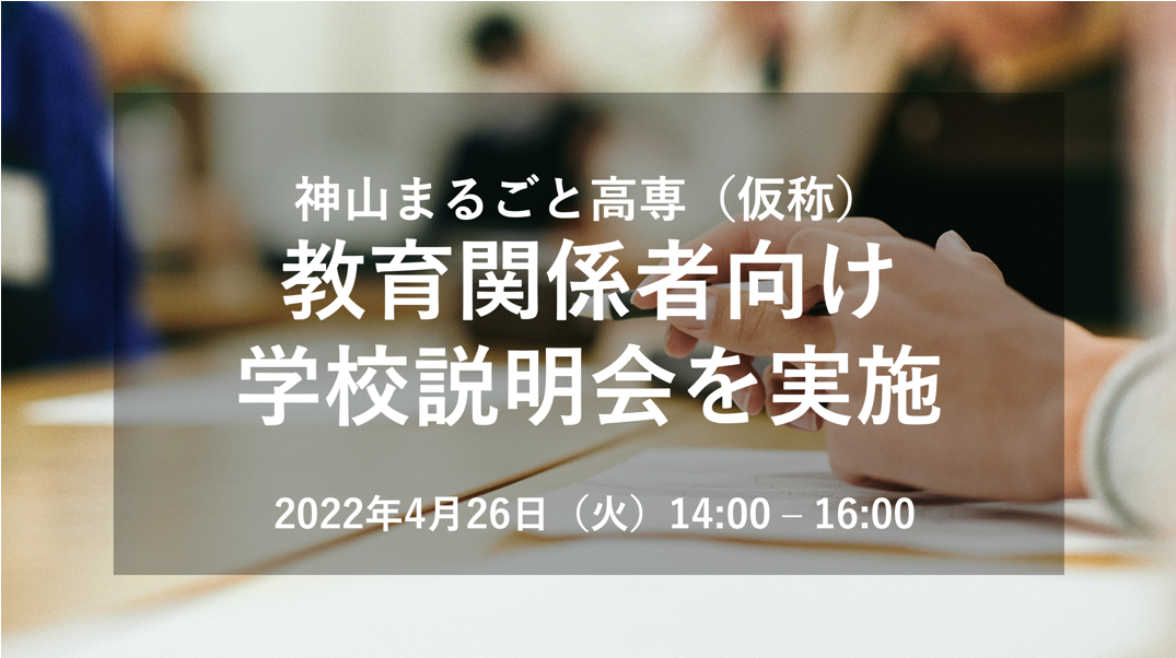 神山まるごと高専(仮称)、4月26日(火)に教育関係者向け学校説明会を実施