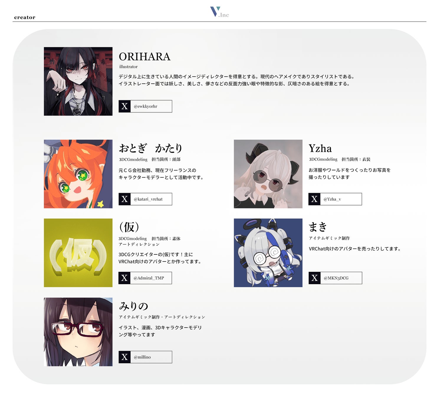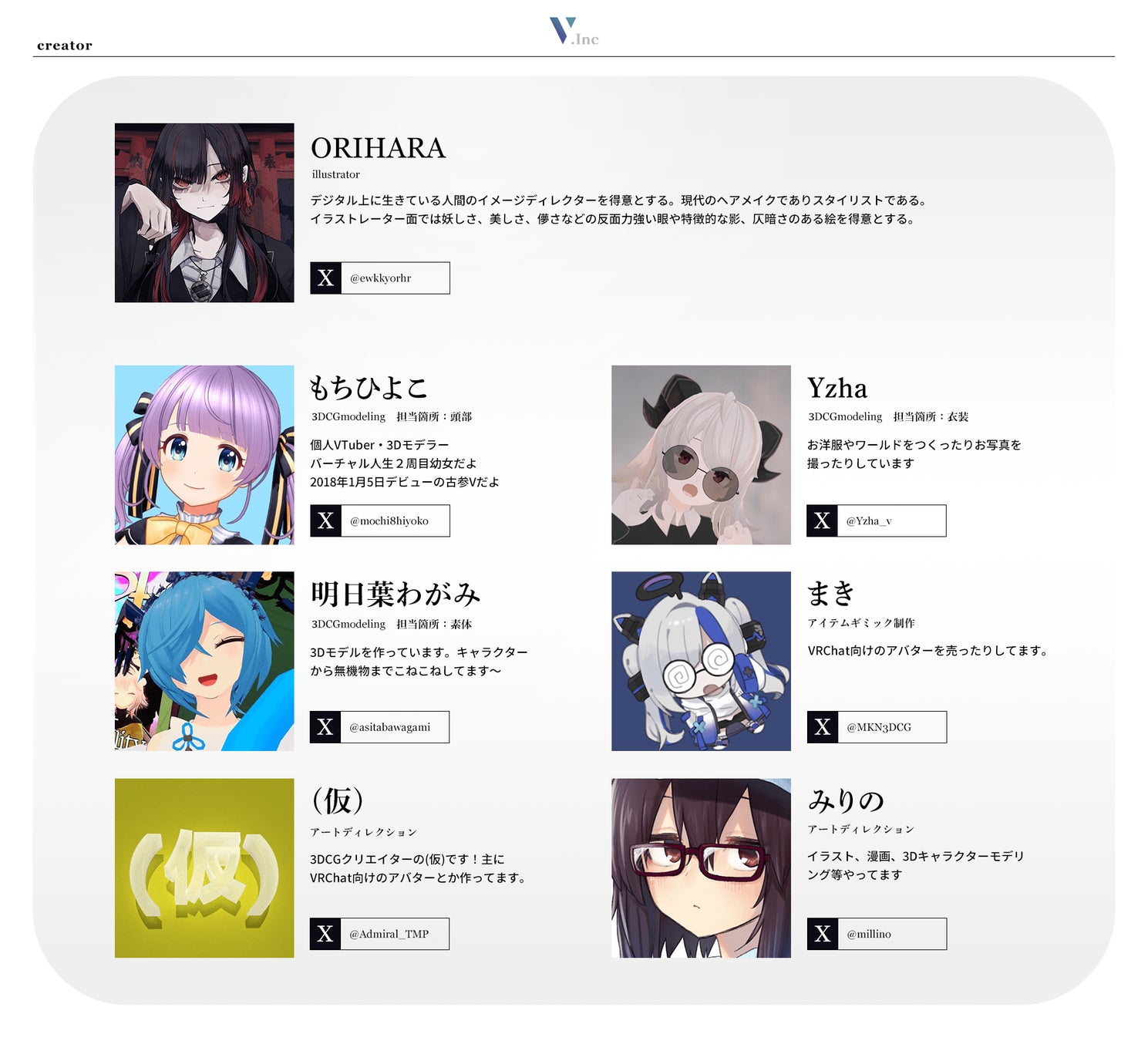 Vは、国内でもまだ前例がほとんどない、複数販売アバターの同時制作進行/チーム体制での分業体制確立など、クリエイターのクリエイティビティを最大限発揮できるような仕組みづくりを進めております。