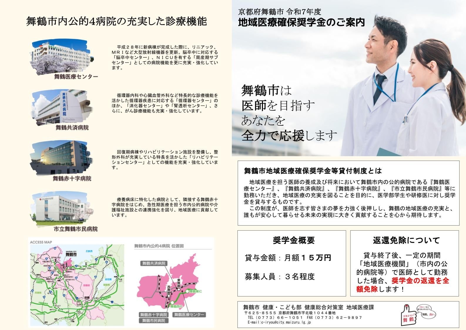 舞鶴市は医師を目指すあなたを全力で応援します。