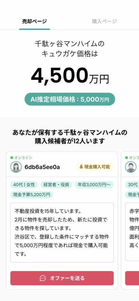 プロフィール登録制プラットフォームだから、売主は、買主の資金力やニーズを見極め、ダイレクトアプローチ仲介つきの内見・契約