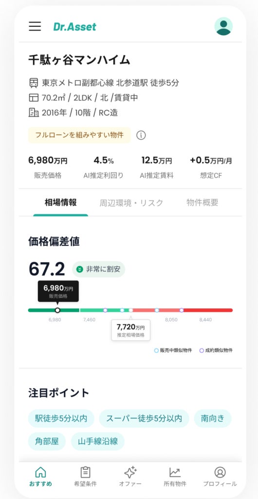 このような豊富な情報提供をAIが客観的に行うことで、売主・買主の双方にとって必要な相場情報を透明に見える化し、取引の迅速化・活性化を図ります。