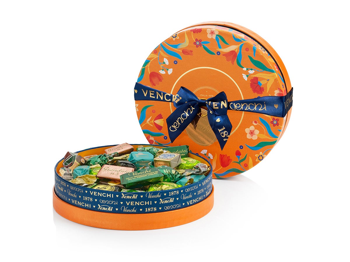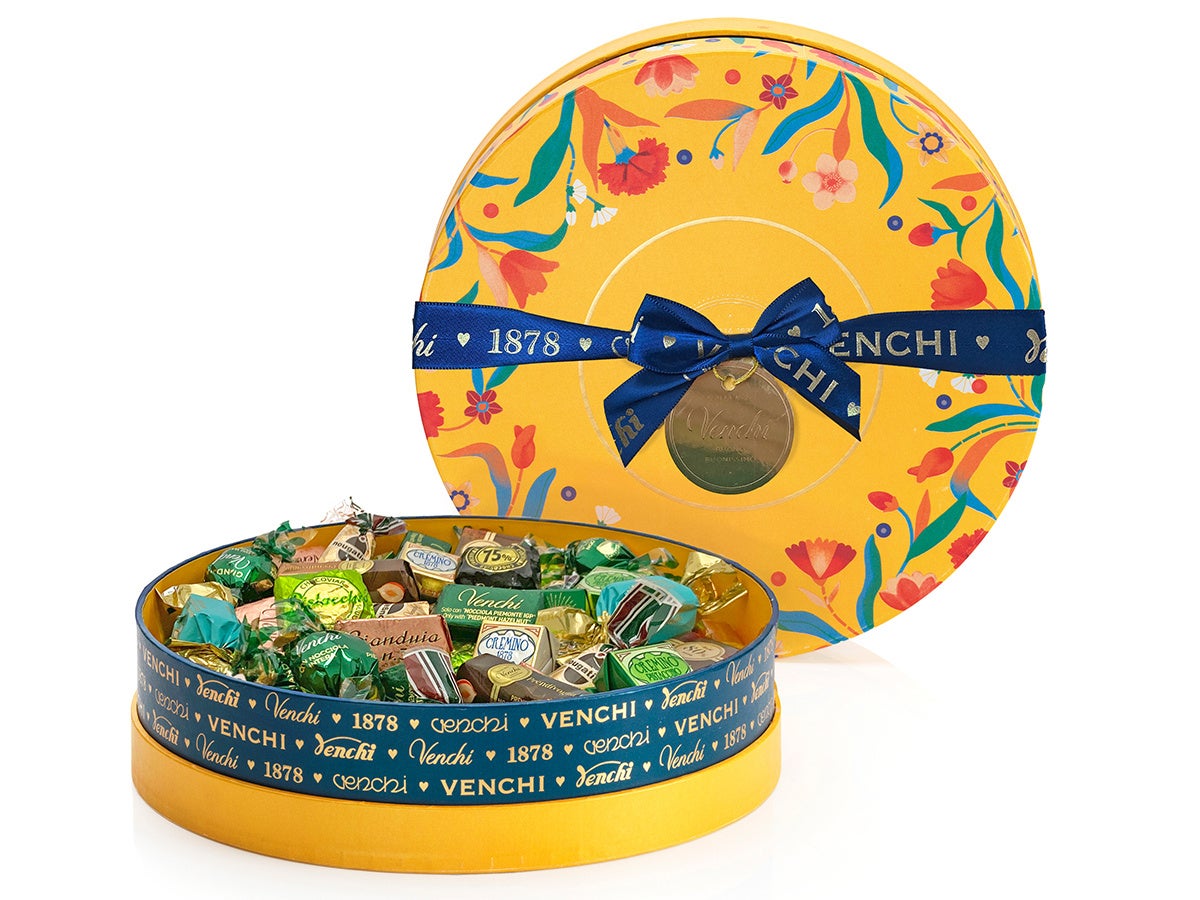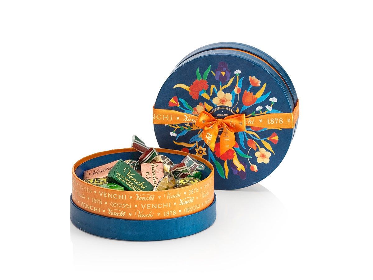 花々の装飾が美しいクラシカルなギフトボックスにイタリアの伝統的なチョコレート、ジャンドゥイオットとクレミノ7種類24個を詰め合わせました。
