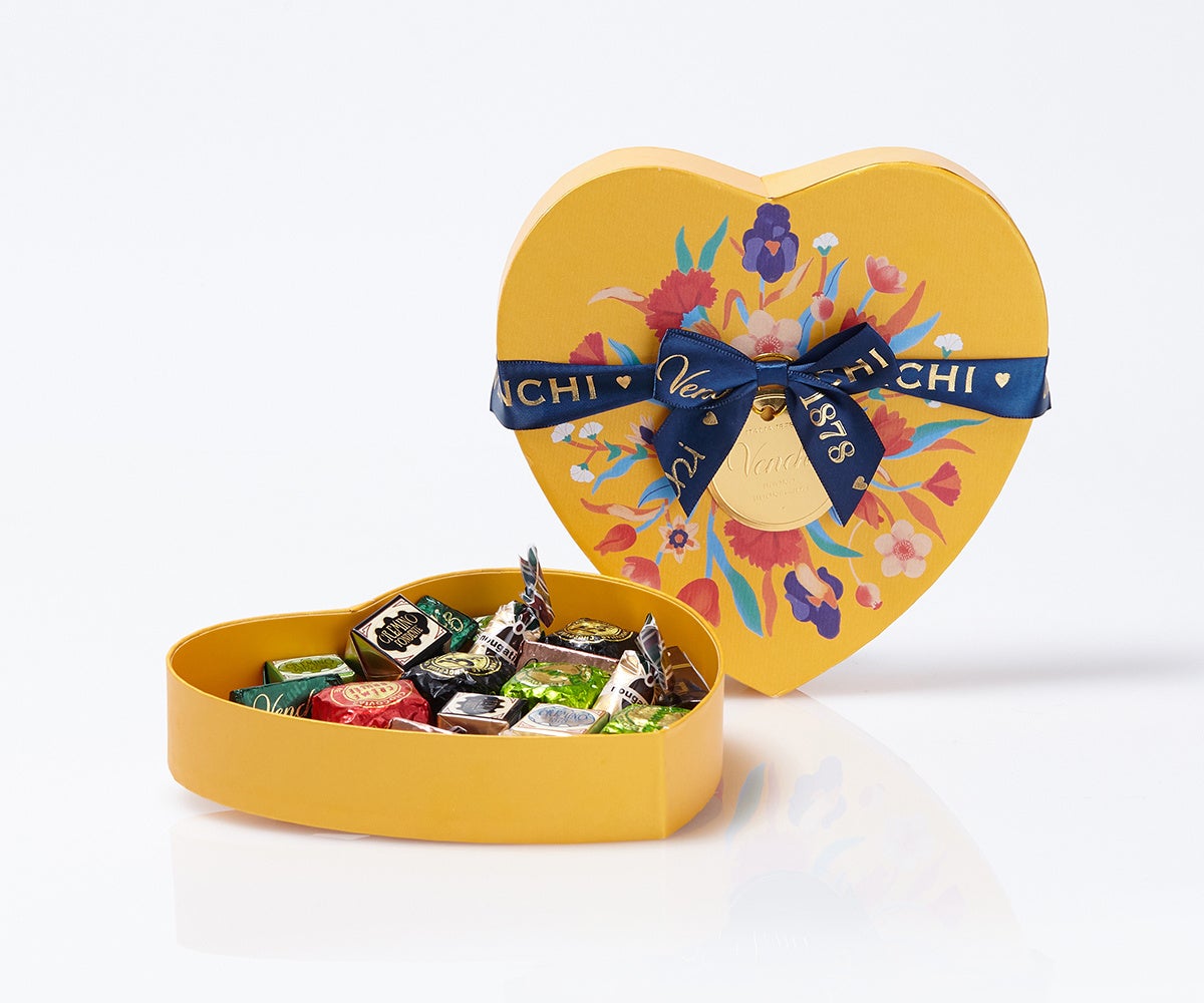 色とりどりの花々が咲き誇るハート型のギフトボックス。10種類19個のチョコレートをバランスよく詰め合わせました。