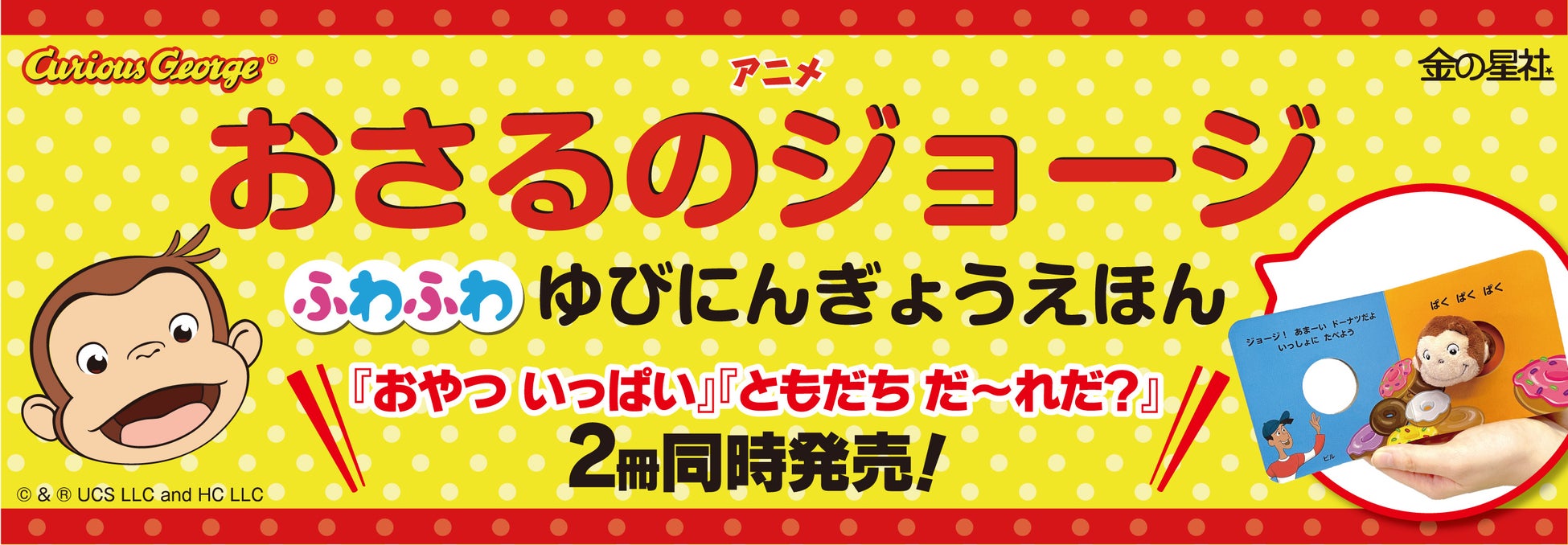 株式会社⾦の星社(本社:東京都台東区、代表取締役社⻑:斎藤健司)は、「アニメおさるのジョージ ふわふわ ゆびにんぎょうえほん『おやつ いっぱい』『ともだち だ〜れだ?』」の2冊を12月、全国の書店にて発売しました。