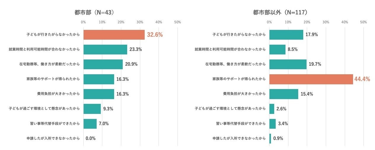 非入所者の入所しなかった理由は都市部では「子どもが行きたがらなかったから(32.6%)」