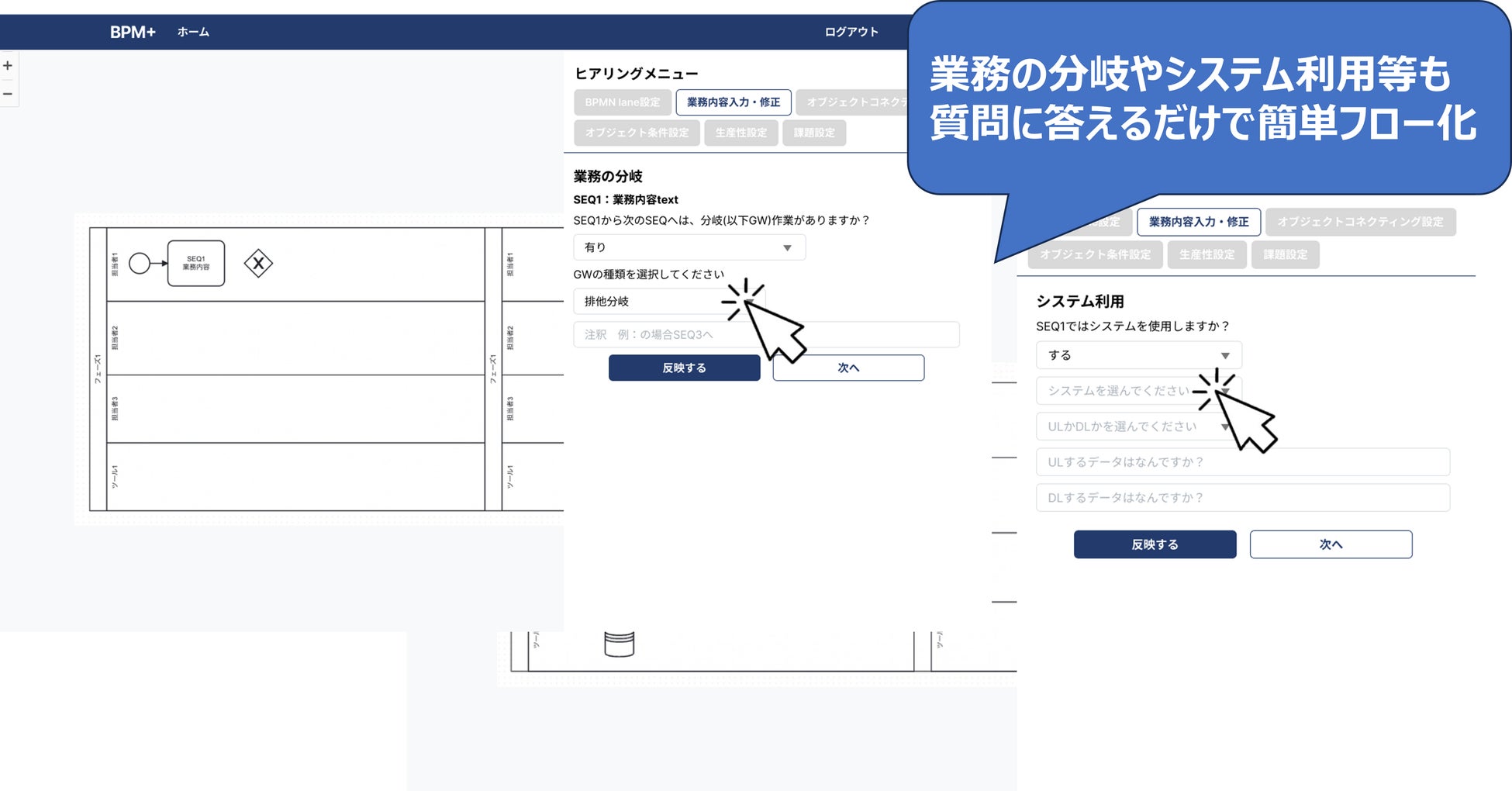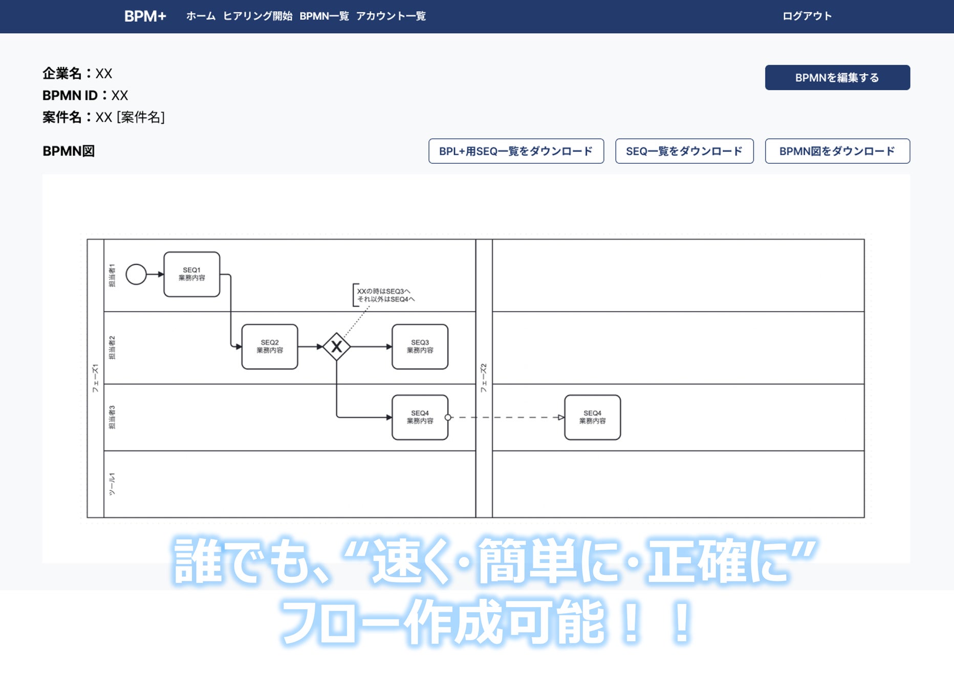 誰でも、“速く・簡単に・正確に”フロー作成可能!!業務フロー自動生成ツール【BPM+】特許申請中!